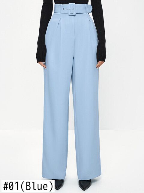送料無料 女性ブルーウエストロングバギーパンツとサッシ春ジップズボンボタンルーズパンツオフィスレディ スプリング 春物 会社 学校 通勤や通学にも AE5567671722135238