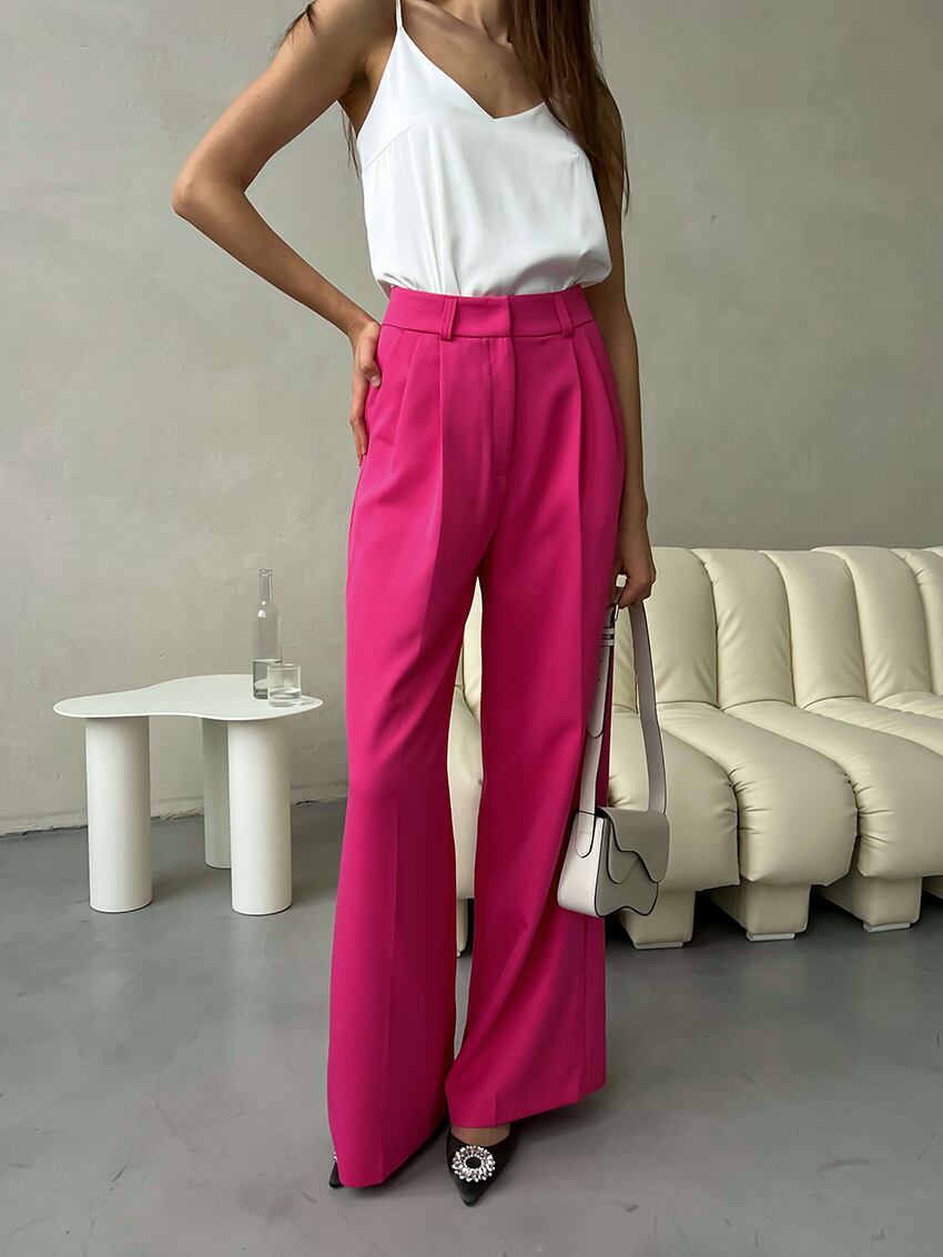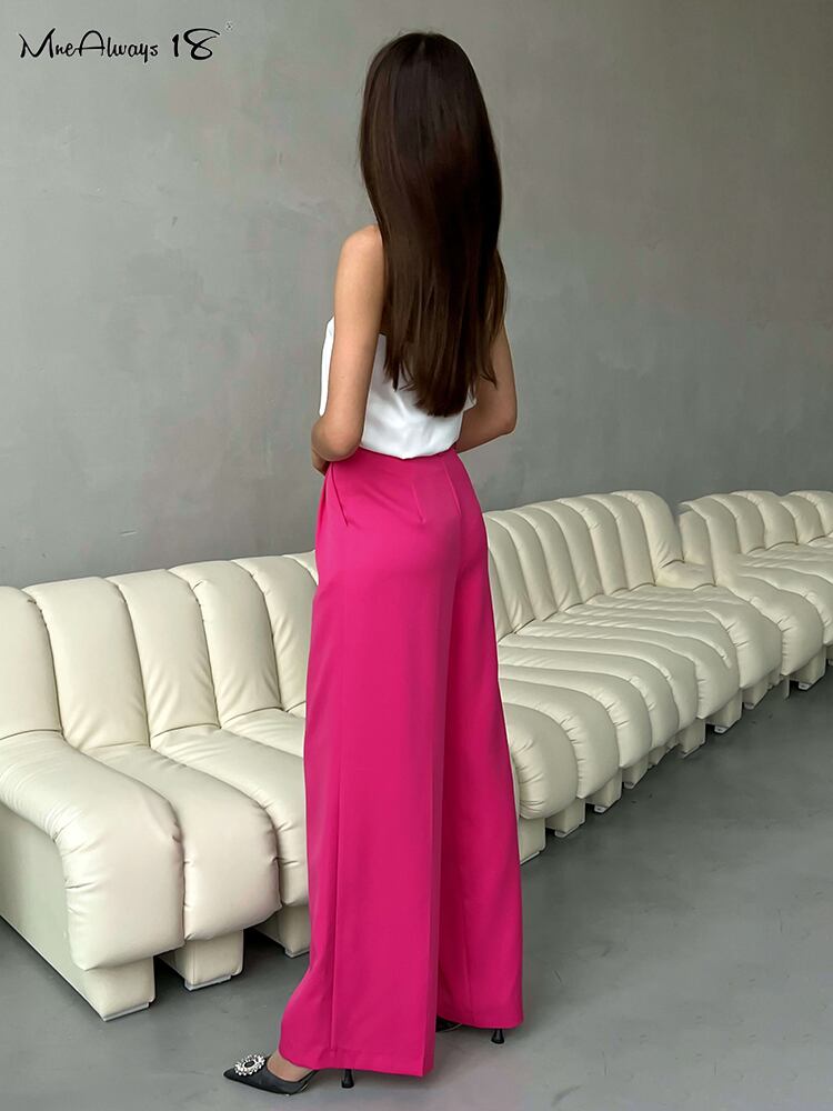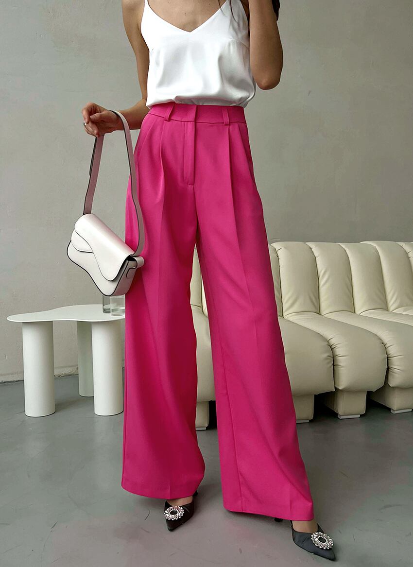 送料無料 ローズピンク ウエスト プリーツ パンツ ジップ ワイドレッグ パンツ レディース 春 2023 Cly パンツ スプリング 春物 ワイドパンツ AE5567644059713392
