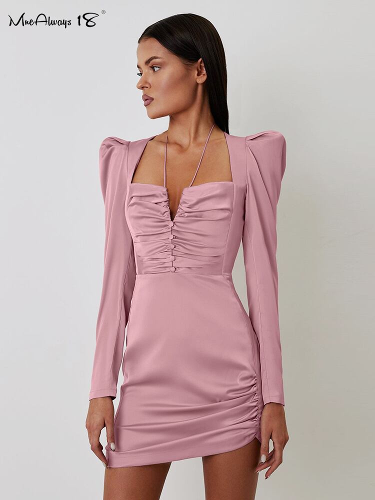 送料無料 パーティーセクシーなシャーリングドレス春夏ソフトサテンウエストドレスレースアップ無地ミニドレス女性 2023 クラブ スプリング 春物 サマー 夏物 ソリッドカラー AE5567631003473482