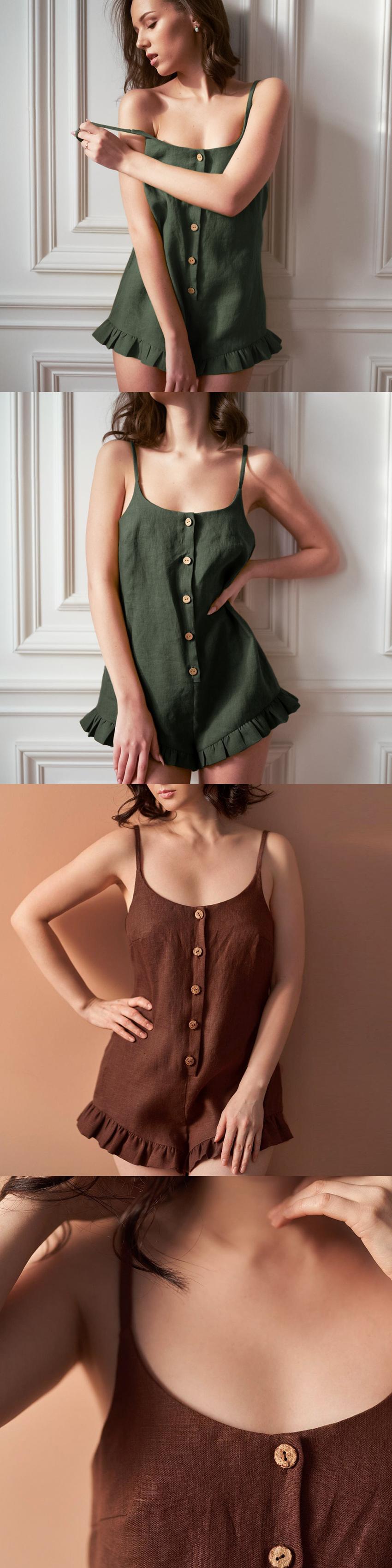 送料無料 セクシーなホームジャンプスーツ女性シックなフリル夏オーバーオールスパゲッティストラップワンピースショーツ遊び着薄いジャンプスーツ サマー 夏物 ブルマー AE5567683059356425