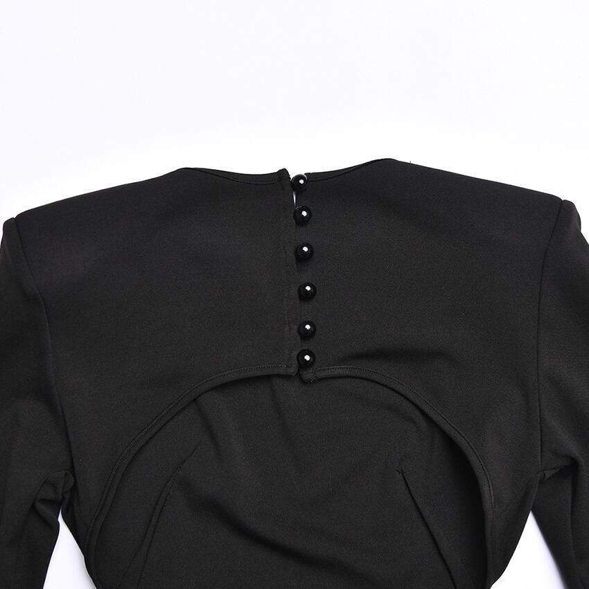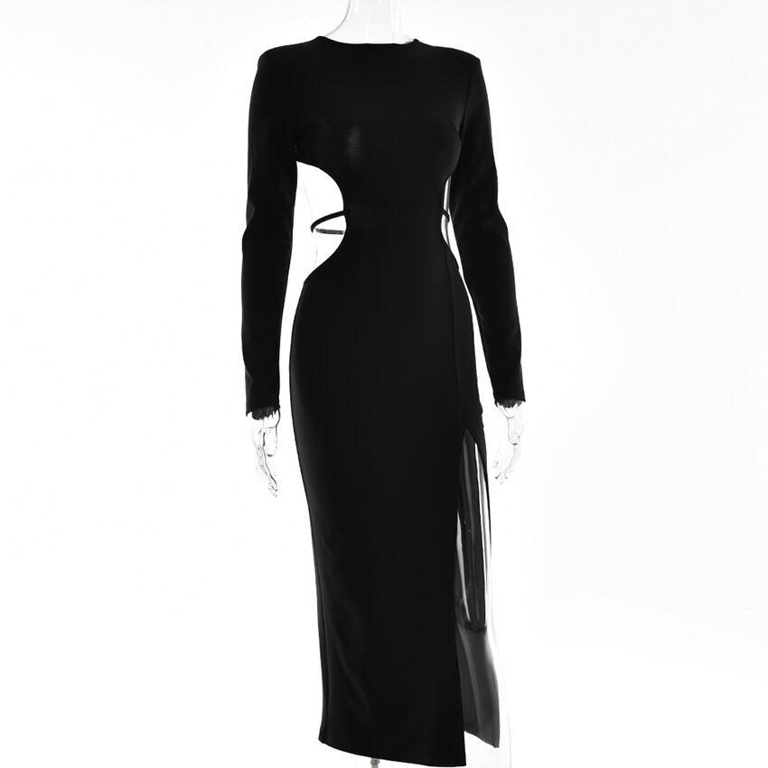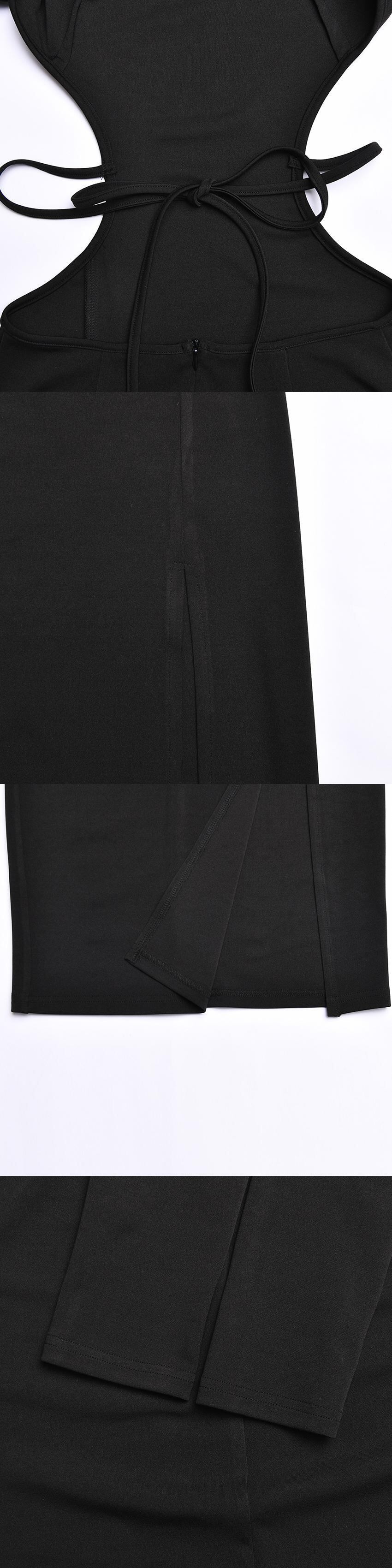 送料無料 ショルダーパッドイブニングミディドレス女性オープンバックセクシーな黒スリットドレスウエストパーティーボディコンドレス春 ブラック スプリング 春物 AE5567695387818006