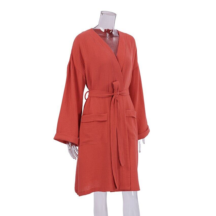 送料無料 V ネック サッシュ ローブ ドレス女性ショルダー長袖コットン ドレス ルーズ ポケット 2023 レディ レースアップ ホームウェア ドレス ロング Vネック AE5567644234611526