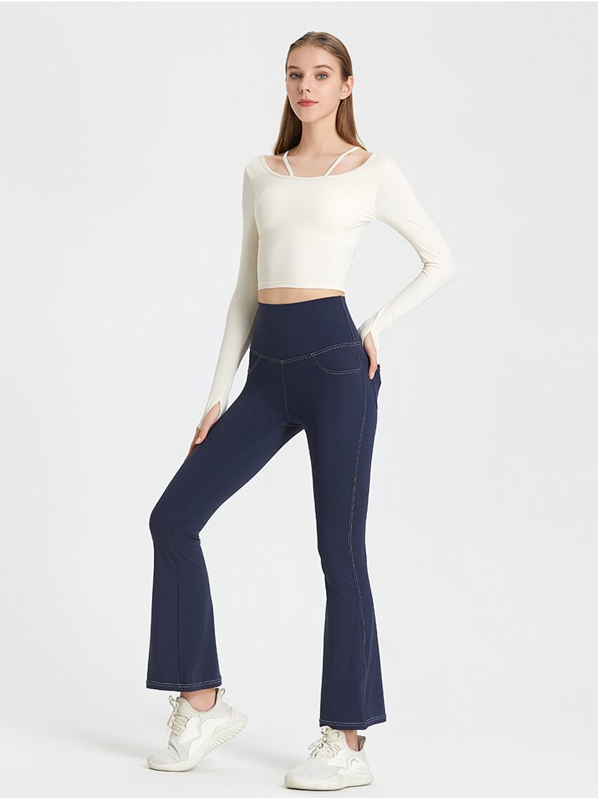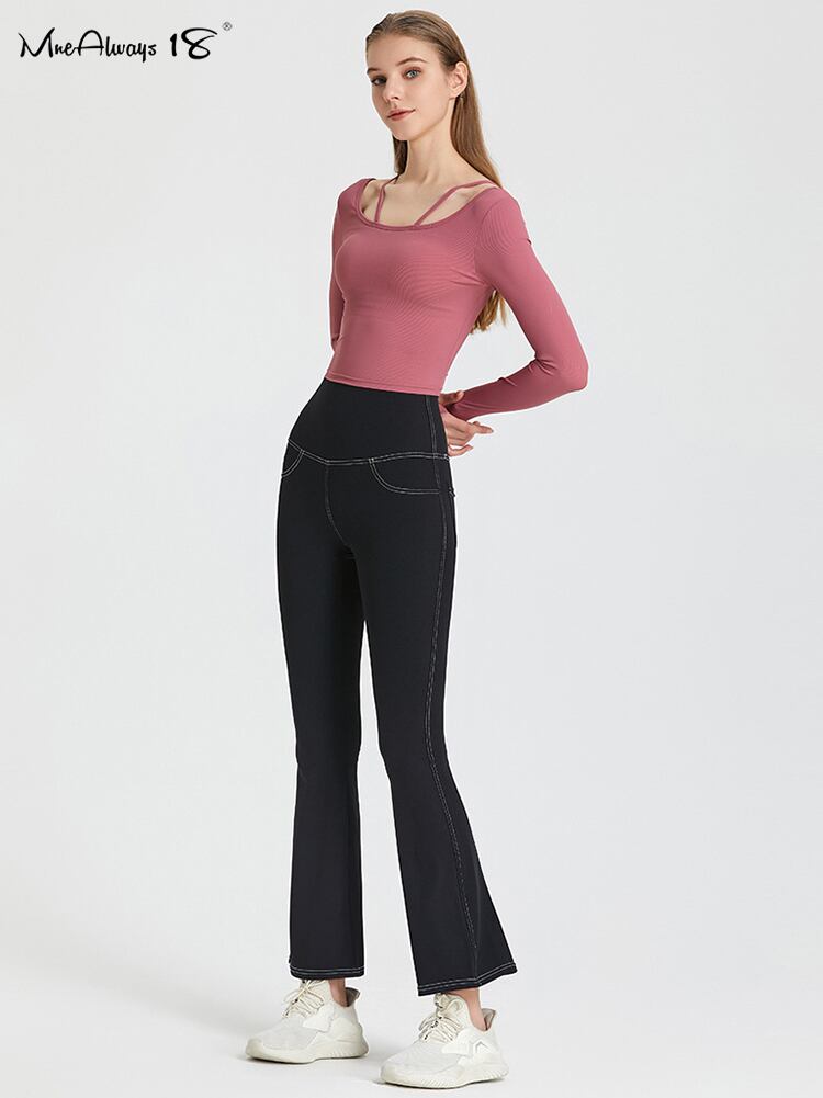 送料無料 スポーティな弾性フレアパンツ女性ウエストソフト夏ヨガパンツスポーティスリム足首までの長さのズボン 2023 エラスティック 伸縮 サマー 夏物 AE5567683001547893