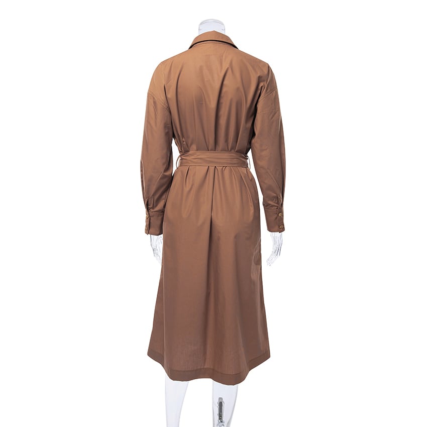 送料無料 春の女性のロングシャツドレスとサッシ長袖ボタンドレスオフィス夏 2023 ラペルドレス スプリング 春物 サマー 夏物 会社 学校 通勤や通学にも AE556767133813589