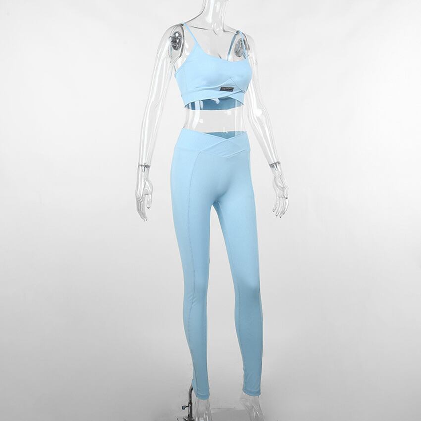 送料無料 スポーティーな女性のトラックスーツ 2 ピーススーツレタータンクトップとヨガパンツの衣装 2023 年夏スリムパンツセット サマー 夏物 AE5567666036101497