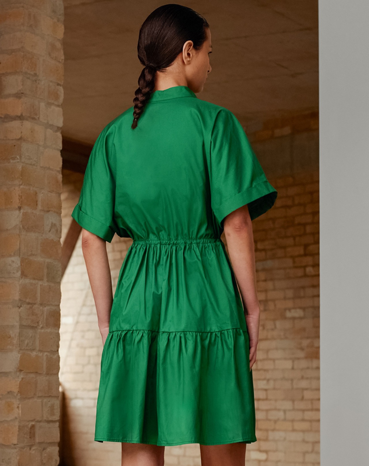 送料無料 バットウィングスリーブ シャーリング グリーン ドレス 夏 半袖 ドローストリング ドレス オフィス ポケット Aライン ドレス 2023 ショート ハーフスリーブ サマー 夏物 会社 学校 通勤や通学にも AE5567691871133484 | 女性の為の通販サイト-fashion navi