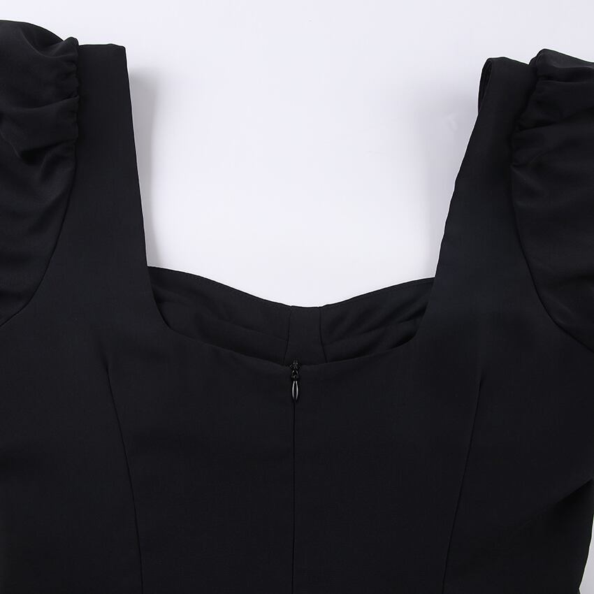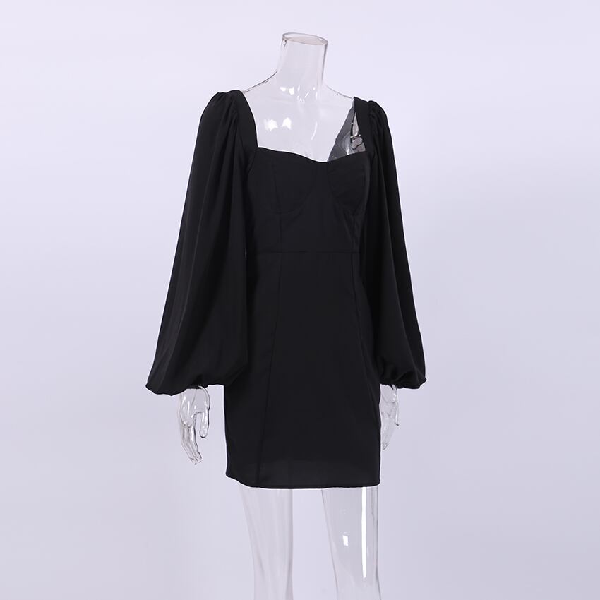 送料無料 パフスリーブ女性パーティーブラックドレスセクシーなスクエアカラーボディコンドレス春 2023 バックレスオフィスドレスミニ スプリング 春物 スクウェア 会社 学校 通勤や通学にも AE5567663397728335