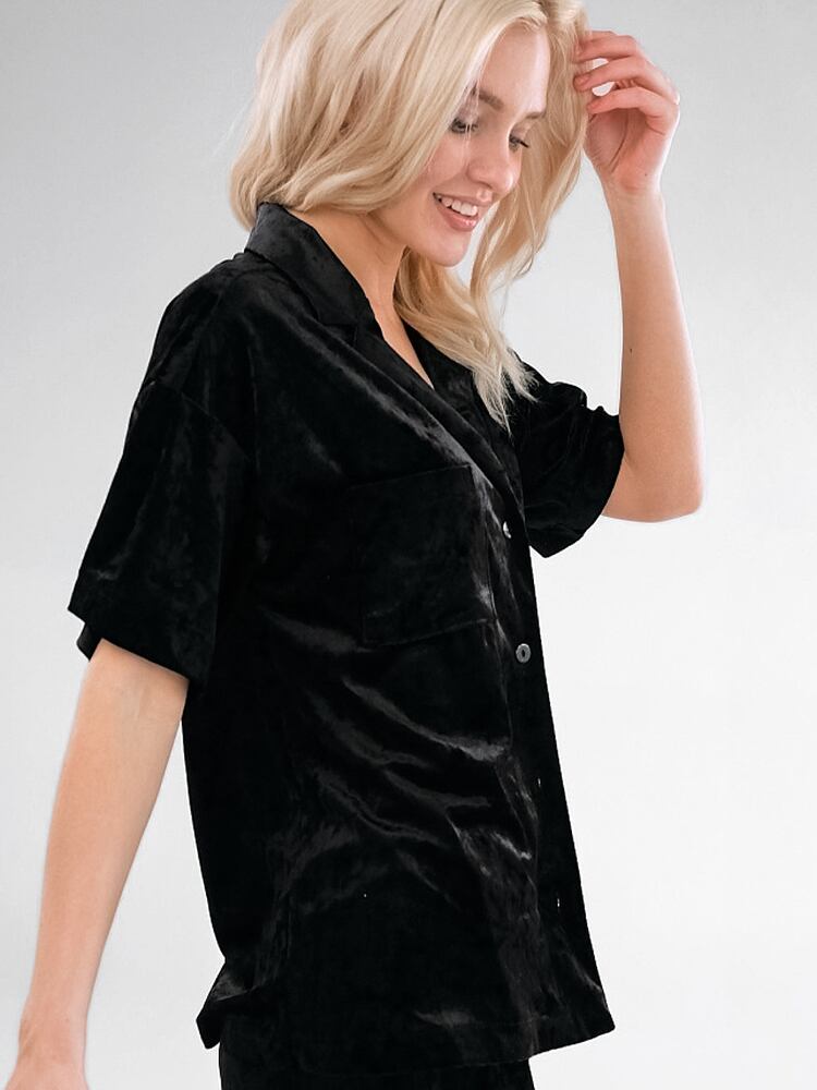 送料無料 ダイヤモンドフリースホームウェアスーツポケット半袖トップスレディース衣装黒ワイドレッグショーツパジャマ 2022 ショート ブラック ハーフスリーブ ブルマー ワイドパンツ AE5567617075243902