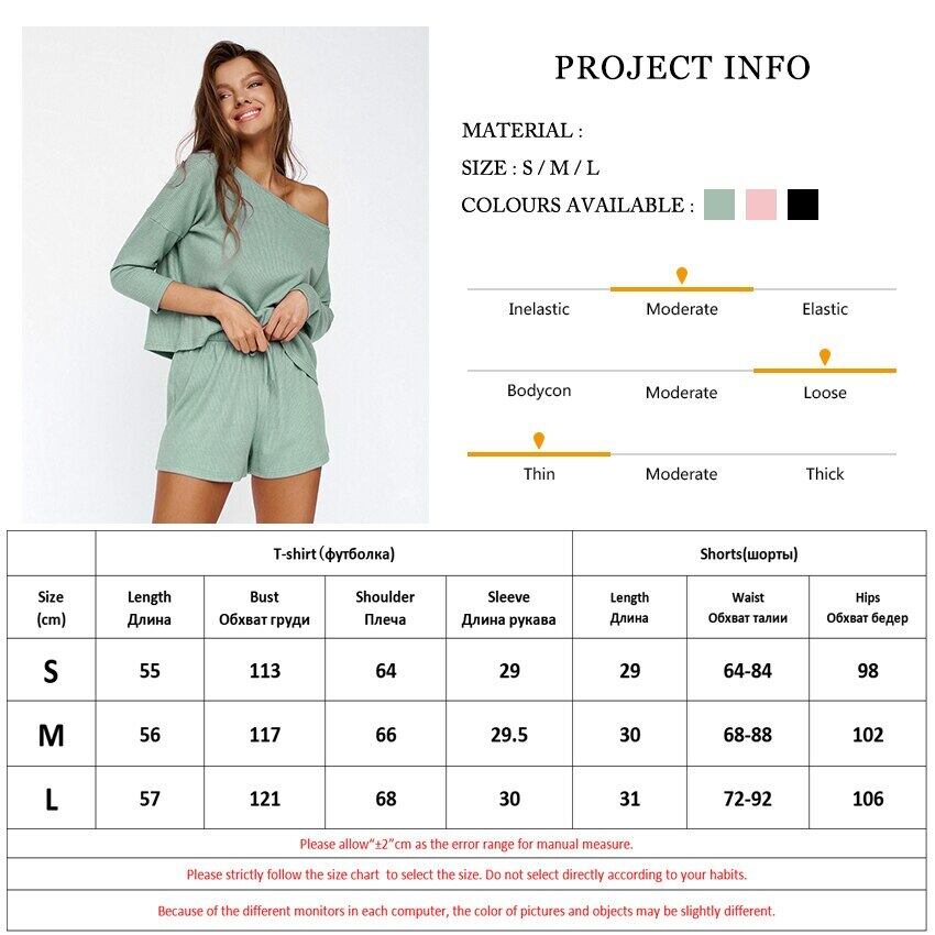 送料無料 リブニット 2点セット レディース ナイトウェア オフショルダー セクシー トップス ホームスーツ ショートパンツセット ピンク 冬 ウィンター 冬物 ショーツ ブルマー AE5567649347783094