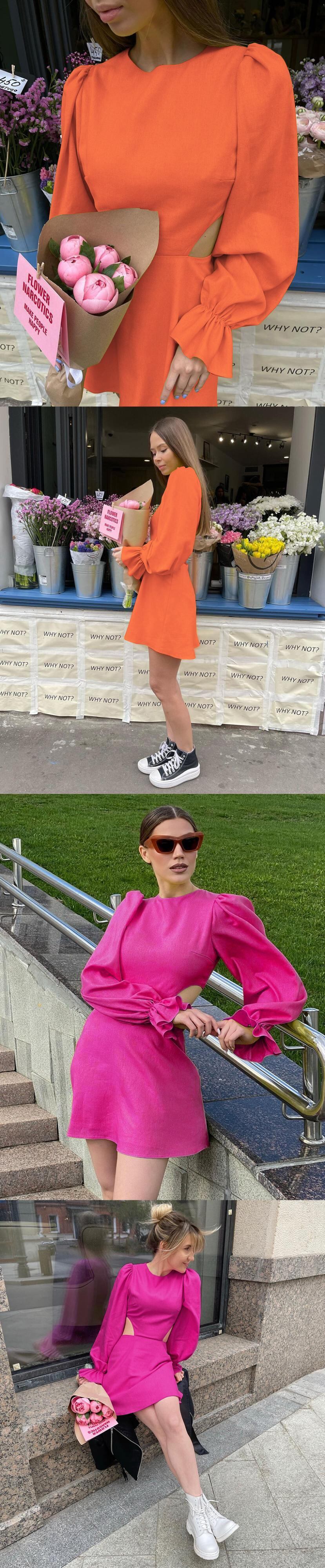 送料無料 パフスリーブコットンリネン女性 A ラインドレスセクシーな中空アウトフリルドレスソリッド O ネックストリートドレス 2023 Oネック Aライン ソリッドカラー AE5567647279131727