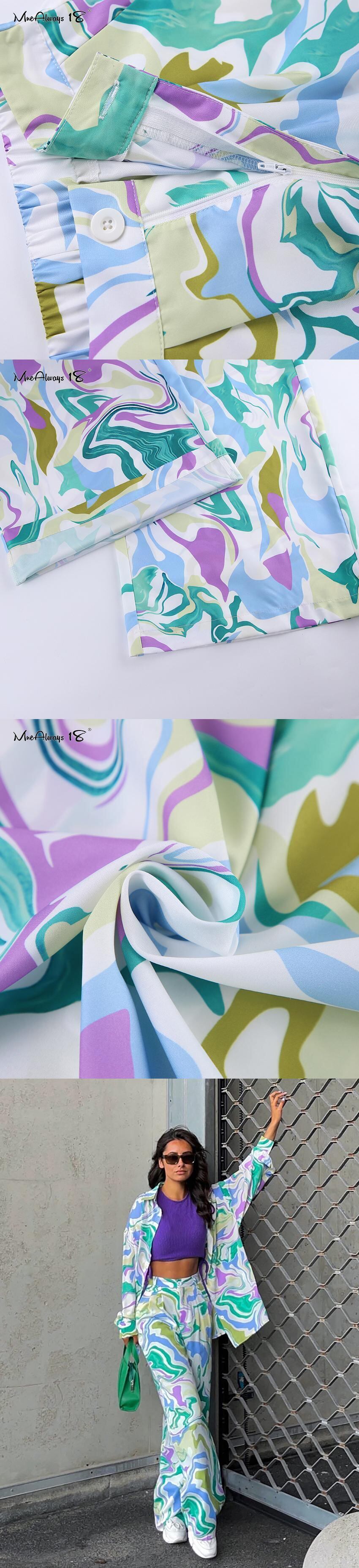 送料無料 プリントパンツ 2点セット レディース コーデ 秋 長袖 シャツ ウエスト 長ズボン スーツ ストリートスタイル ロング オータム 秋物 AE5567663511857335