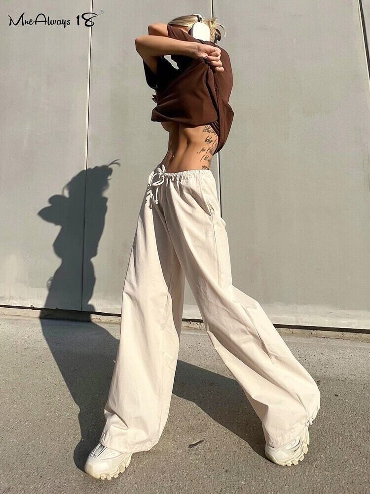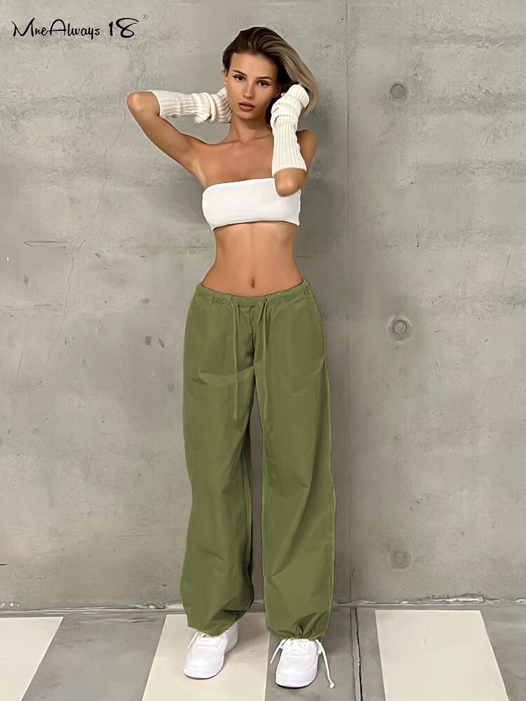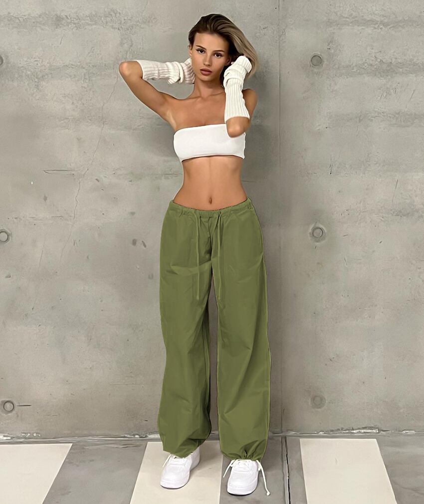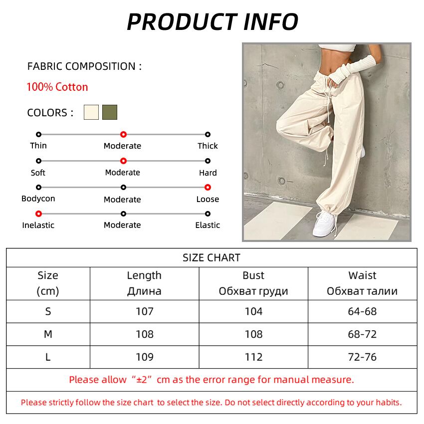 送料無料 巾着グリーンストリートカーゴパンツ夏 2023 ミッドウエスト女性コットンジョガーパンツポケットベージュパンツ サマー 夏物 AE5567694766158933