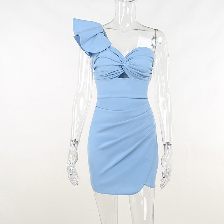 送料無料 ブルーシャーリングクロスフローラルドレスの女性の夏 2023 セクシーな Wrape パーティードレスオフショルダー中空アウトドレスミニ サマー 夏物 花柄 AE5567612942940698