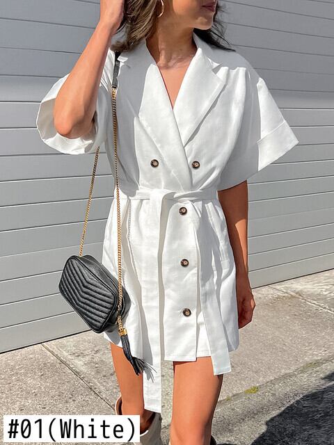 送料無料 Aラインノッチオフィスベルトドレス女性2023年夏ダブルブレストブレザードレスショルダーカーキドレス サマー 夏物 ハーネス 会社 学校 通勤や通学にも AE5567676176498110