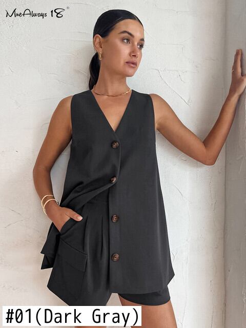 送料無料 ストリートスタイル ダークグレー ショーツスーツ ツーピース ベスト トップス ショーツセット 2023年夏 オフィスショーツ 衣装 サマー 夏物 ブルマー 会社 学校 通勤や通学にも AE5567653385290159