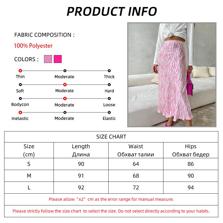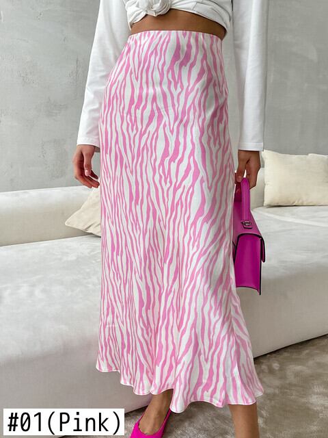 送料無料 女性ゼブラ印刷スカート女性ピンクウエスト A ライン Skrits オフィスサテン流れるミディスカート 2023 Aライン 会社 学校 通勤や通学にも AE5567680378080603