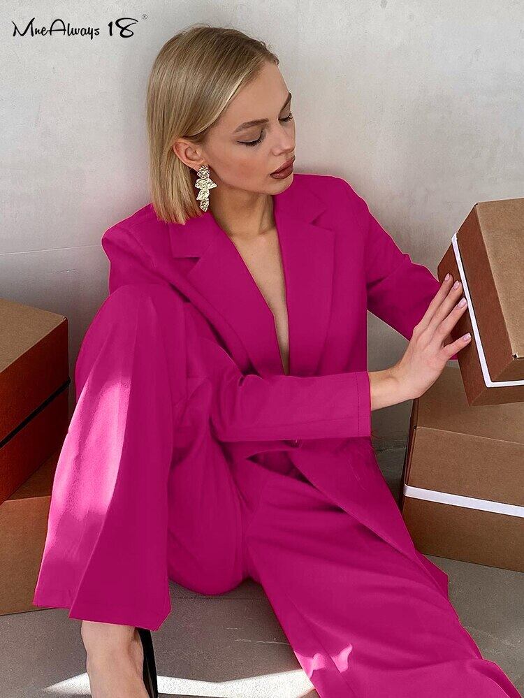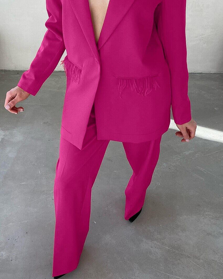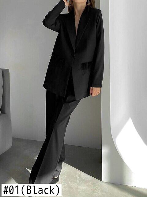 送料無料 Feathers Rose Pink パンツスーツ 2ピース オフィス レディース アウトフィット 春 2023 ピンク スプリング 春物 ワイドレッグ ワイドパンツ 会社 学校 通勤や通学にも AE556767951514229