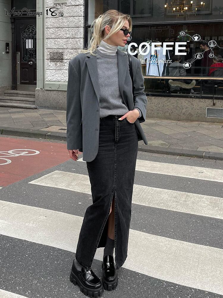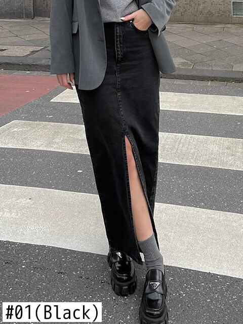 送料無料 ストリートスタイル黒デニムスカート女性ウエストスプリット Mixi スカート夏 2023 足首までの長さの無地スカート女性オフィス ブラック サマー 夏物 ソリッドカラー 会社 学校 通勤や通学にも AE5567627936876904