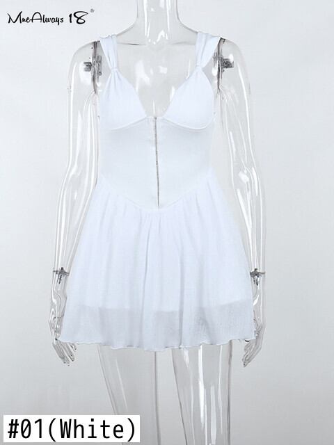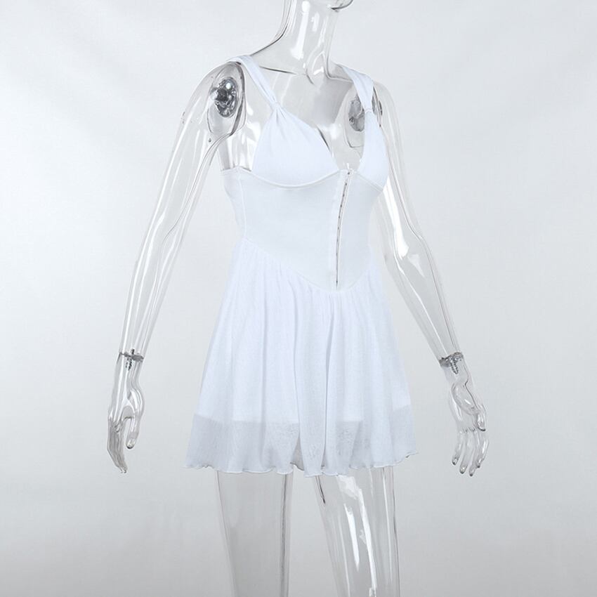 送料無料 セクシーなロー V ネック ホワイト ミニ ドレス夏 2023 女性パーティー スリング ドレス ビーチ スタイル スリム ドレープ ドレス シャーリング サマー 夏物 Vネック AE5567681521200442