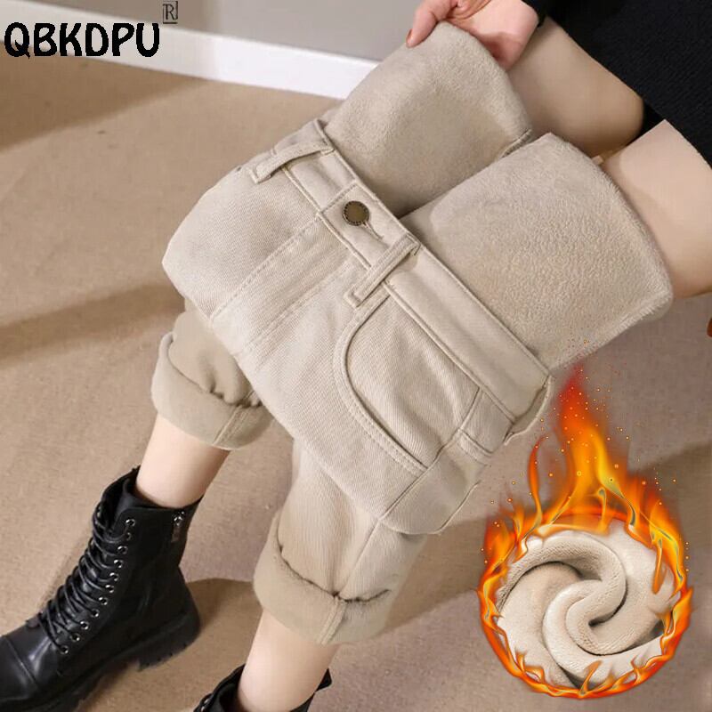 送料無料 プラスベルベット足首の長さの冬のジーンズの女性のウエスト厚く暖かい豪華なデニムパンツカーキハーレム Vaqueros ウィンター 冬物 AE335652982197051