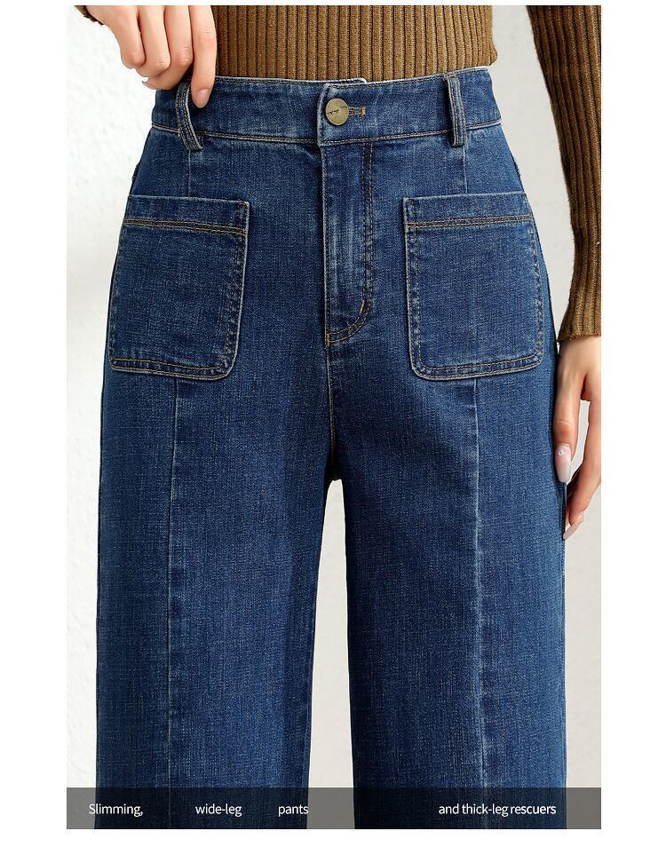 送料無料 2022 バギージーンズ女性ストリートポケットウエストストレートデニムパンツ春オフィスワイドレッグズボン母洗浄 スプリング 春物 ワイドパンツ 会社 学校 通勤や通学にも AE3356530212335779