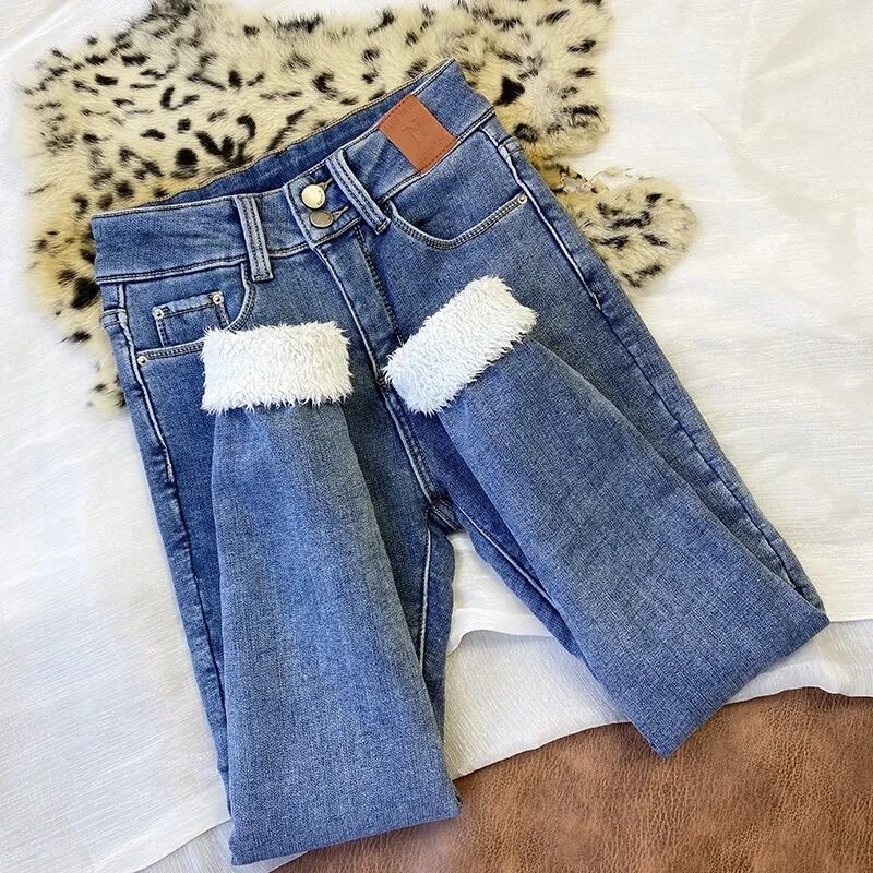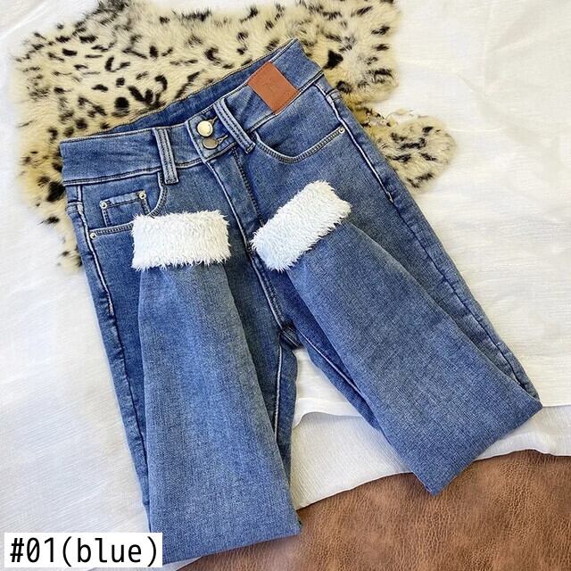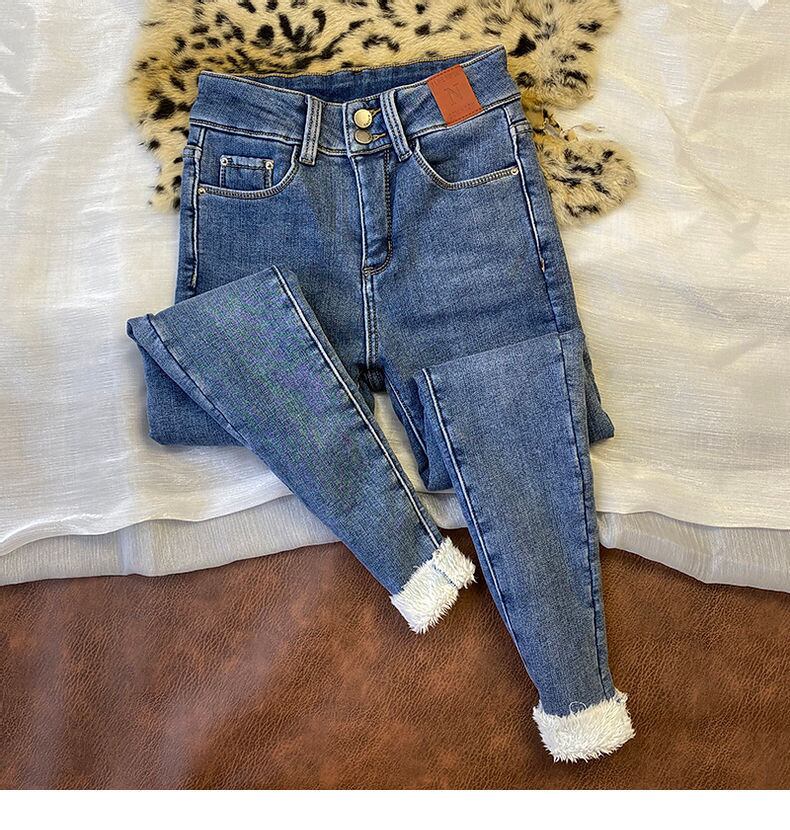送料無料 スーパーウォームカシミヤ冬のジーンズ女性プラスベルベットスキニーデニムパンツウエスト厚みストレッチ Vaqueros ウィンター 冬物 AE3356571335583698