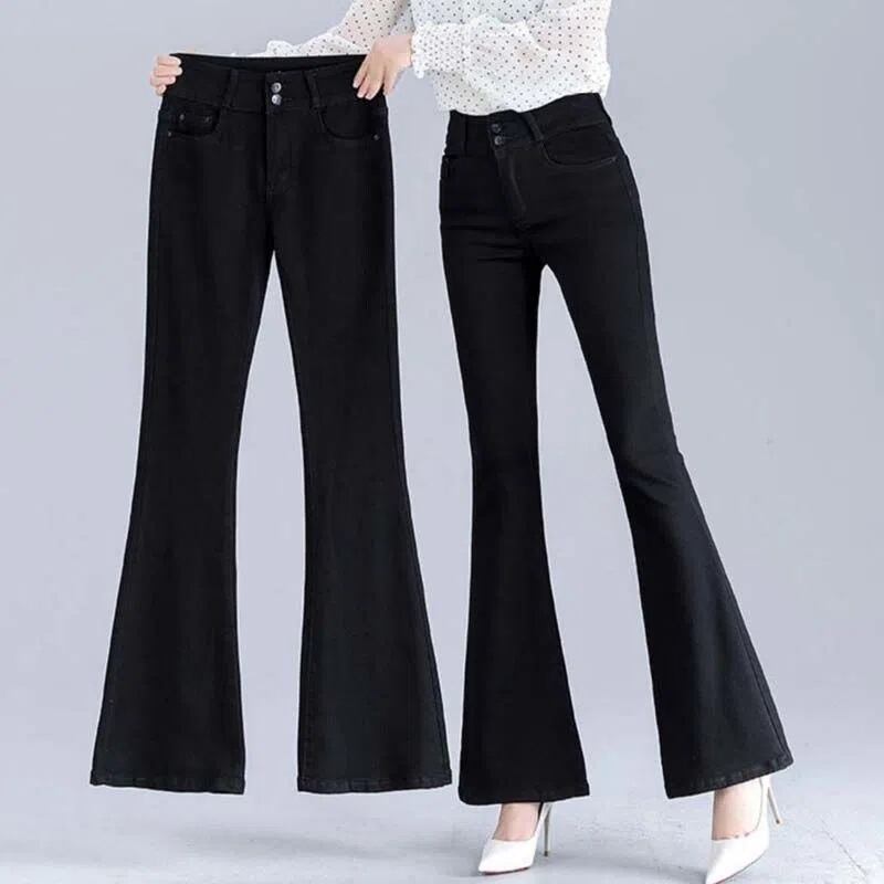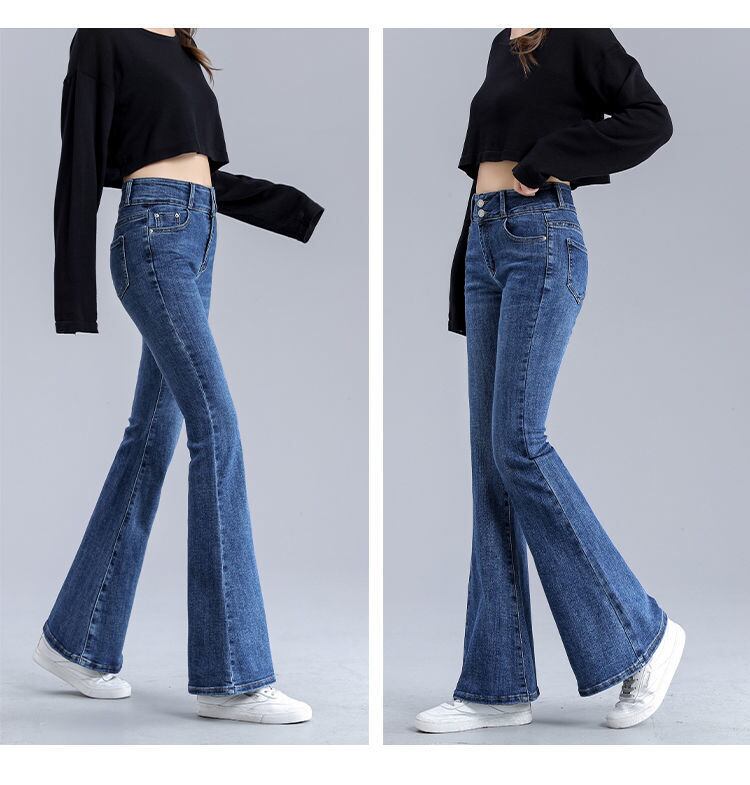 送料無料 ウエスト フレア ジーンズ女性スキニー ストレッチ Vaqueros ブルー ブラック ベルボトム パンツ デニム ズボン AE3356581480310140