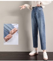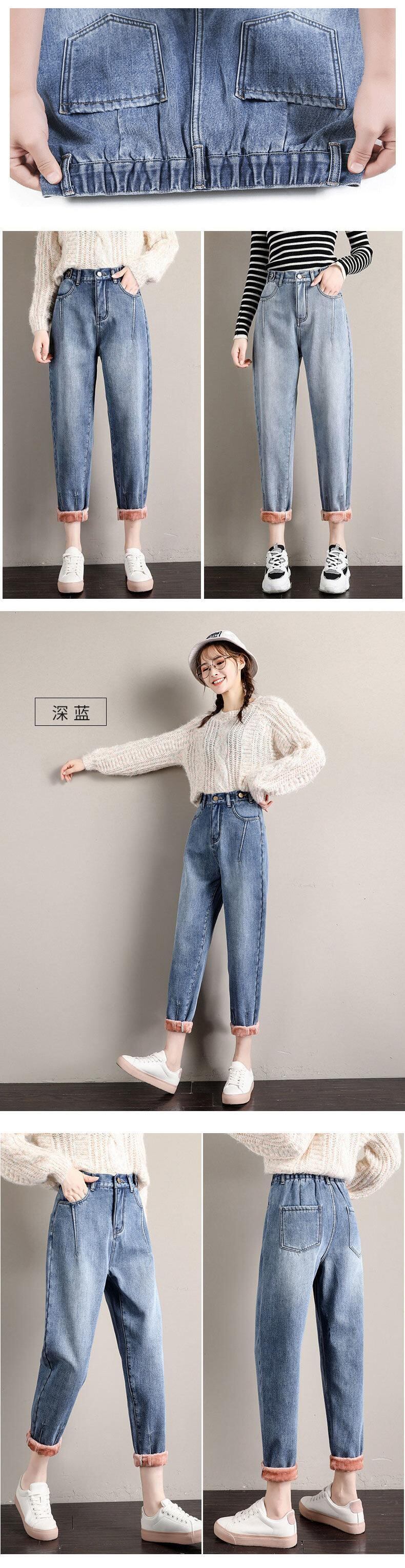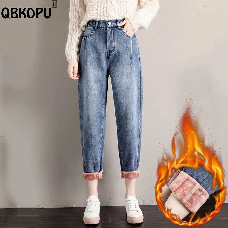 送料無料 プラスベルベット暖かいハーレムジーンズ女性ストリートボーイフレンドスタイルだぶだぶ暖かい Vaqueros ヴィンテージ漂白ウエストデニムズボン ビンテージ AE3356535911333703