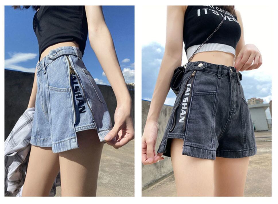 送料無料 夏シックなジーンズショーツ女性ジッパー手紙だぶだぶヴィンテージ Vaqueros ウエストデニムワイド脚ショートパンツ サマー 夏物 ブルマー ワイドレッグ ワイドパンツ ビンテージ AE3356595725859892