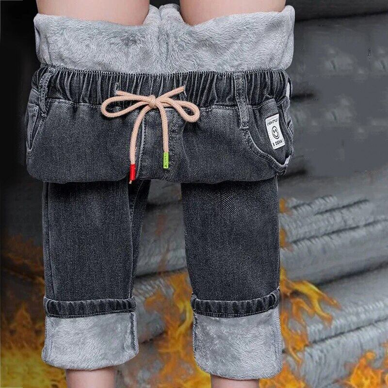 送料無料 プラスベルベット女性のジーンズ冬ウエスト巾着厚みのデニムパンツ足首までの長さストリート暖かいハーレム Vaqueros ウィンター 冬物 AE3356576620841576
