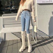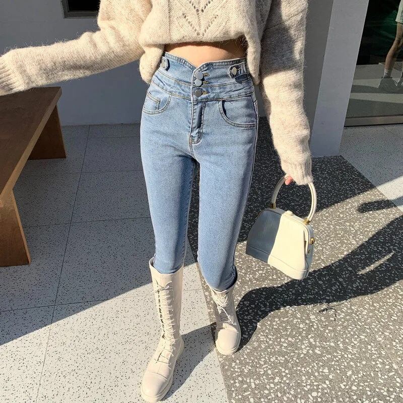 送料無料 シックなスキニージーンズの女性のウエストストレッチペンシル Vaqueros ストリートカウボーイカプリパンツウォッシュアンクル丈デニムパンツ AE3356594803972359