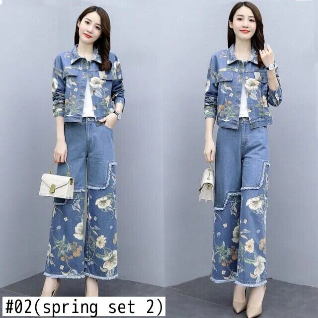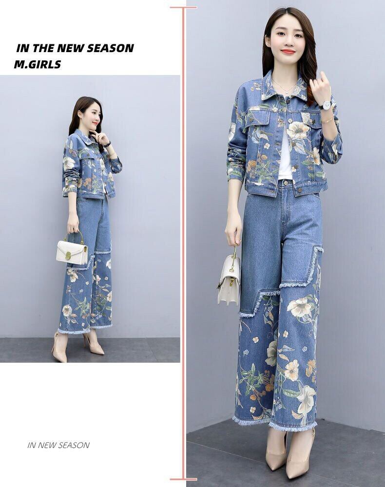 送料無料 冬プラスベルベットデニム 2 個セット女性厚く暖かいフラワープリントの毛皮の襟ジーンズジャケット Outifits ウエストハーレムジーンズスーツ ウィンター 冬物 フラワーデザイン AE3356558468684993