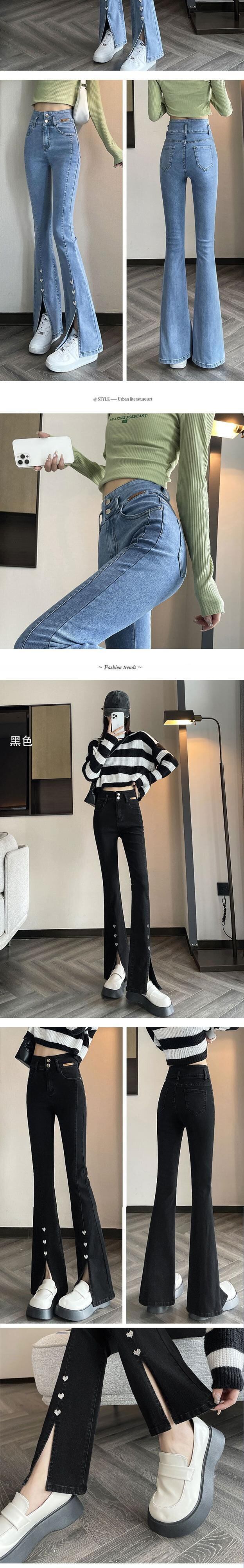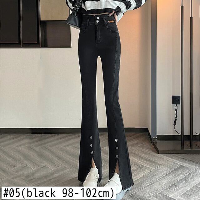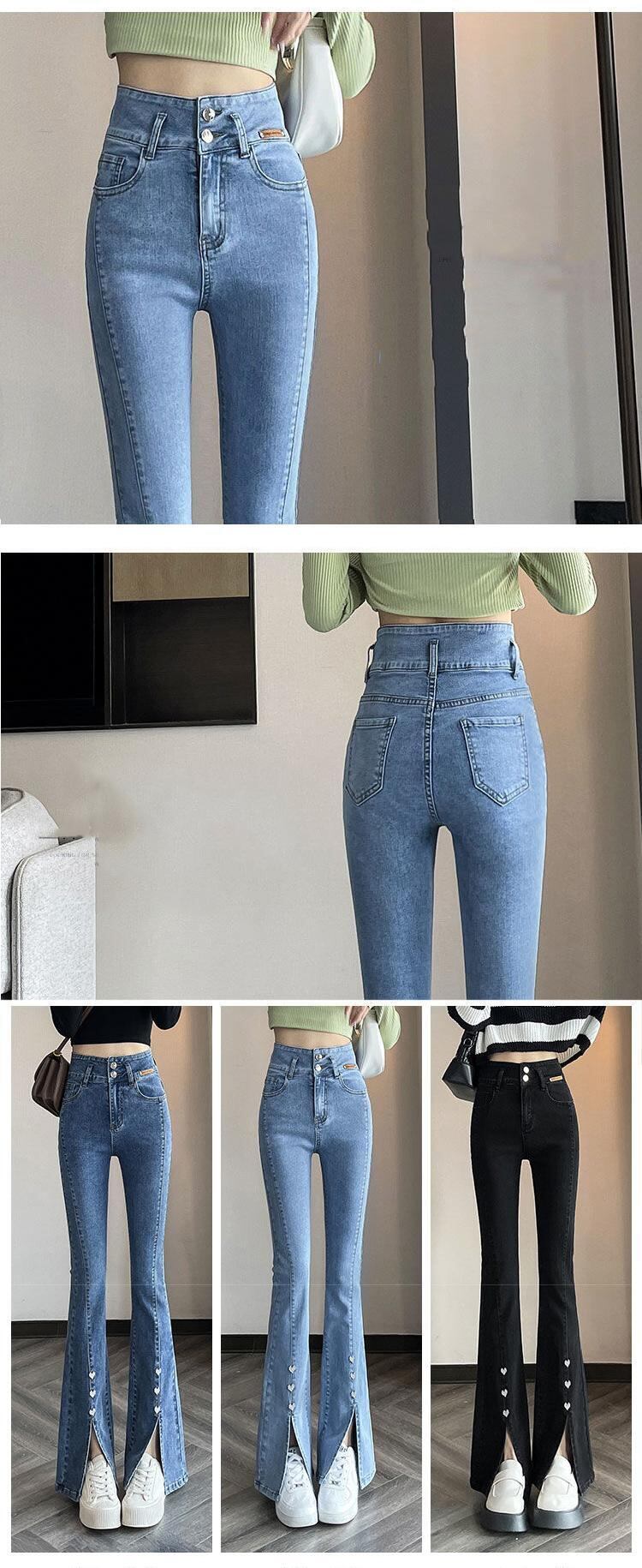 送料無料 スプリットフレアジーンズ女性ウエスト愛スキニー Vaqueros 94-102 センチメートルストレッチベルボトムパンツシックなデニムのズボン レッド AE3356518499211724