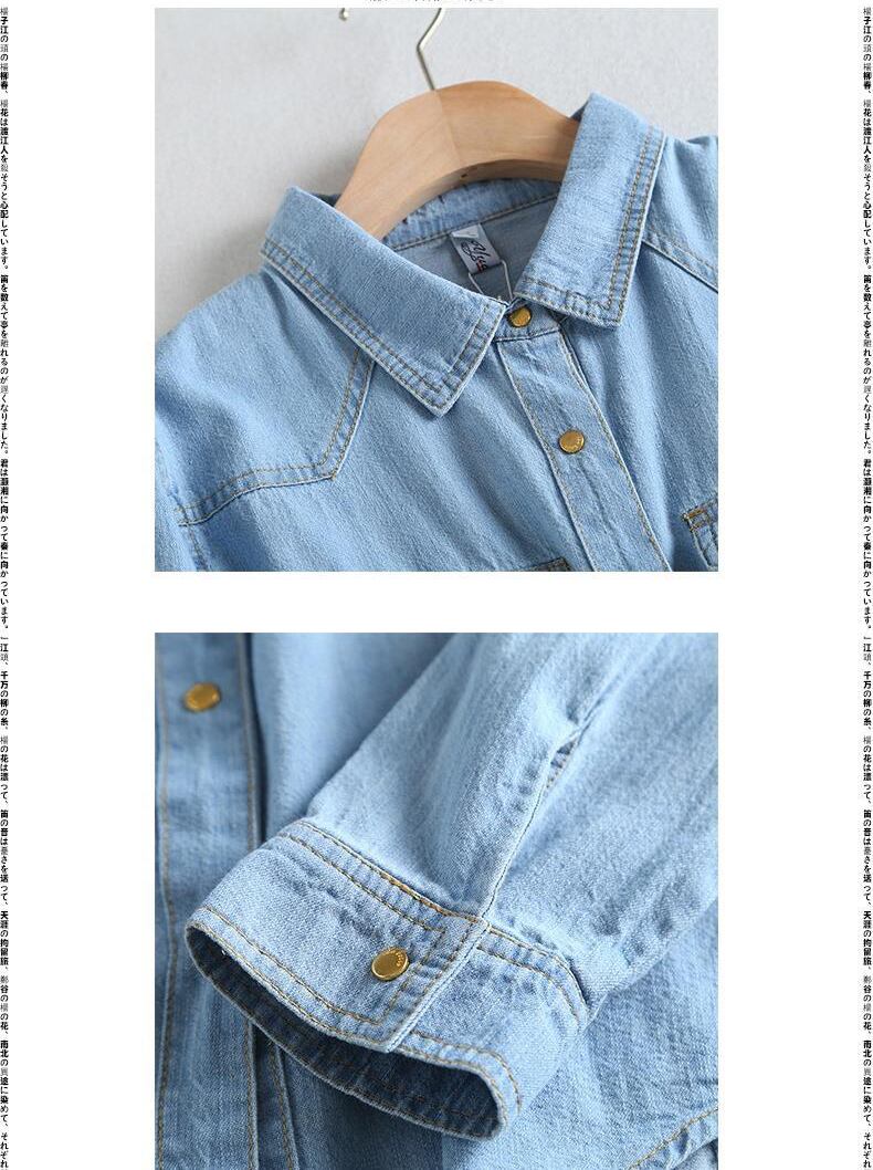 送料無料 女性用 デニム ブラウス 漂白 ポロカラー ジーンズ シャツ ボーイフレンド シングルブレスト ベーシック 春 シャツ ショート ブルー スプリング 春物 AE3356516999898905