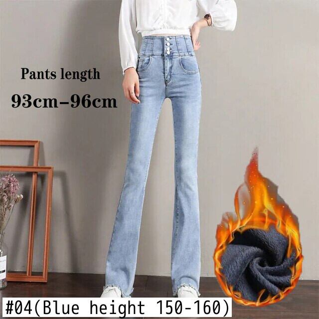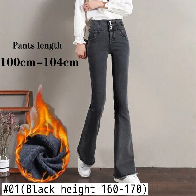 送料無料 スーパーウエストプラスベルベットフレアジーンズ冬暖かい 93-104 センチメートルデニムパンツ女性厚いベルボトムスキニー Vaqueros ウィンター 冬物 AE3356528084470957