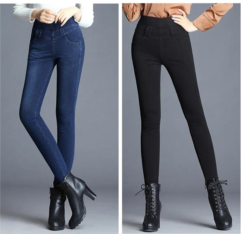 送料無料 冬の青プラスベルベットウォームジーンズ女性ヴィンテージ弾性ウエスト厚い Vaqueros ママスキニーパンツフリースデニムズボン ブルー エラスティック 伸縮 ウィンター 冬物 ビンテージ AE3356558195733813
