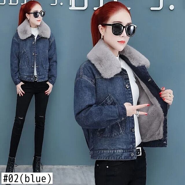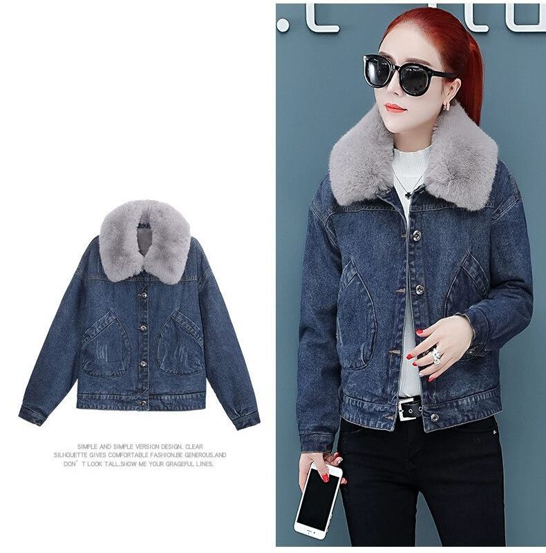 送料無料 冬の毛皮の襟ショートデニムジャケット女性ヘビーベルベットラペルジーンズコートママシングルブレスト暖かい Jaqueta ジーンズ ウィンター 冬物 AE3356529318893602
