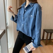 送料無料 スタイル女性のデニムシャツベーシックシックボタンジャンブラウス春秋無地ポケットポロ襟トップ スプリング 春物 オータム 秋物 ソリッドカラー AE3356534513359281 | 女性の為の通販サイト-fashion navi