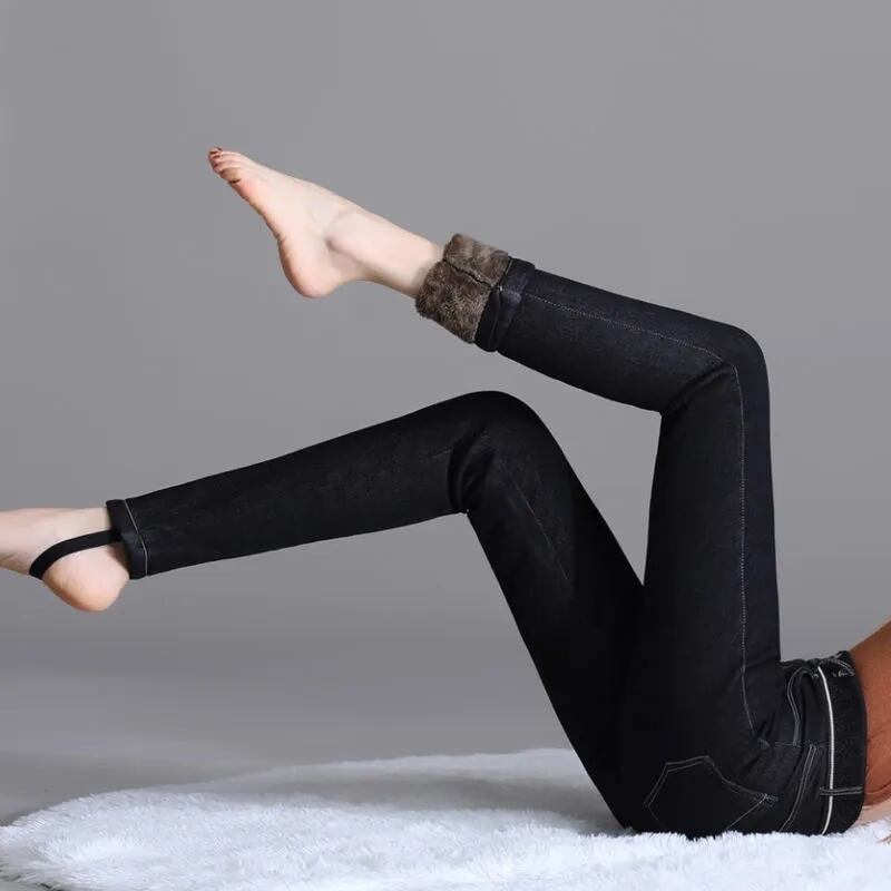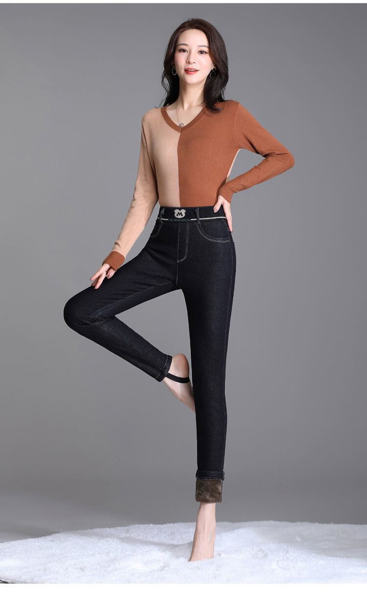 送料無料 スーパー厚いカシミヤ暖かいジーンズの女性の冬プラスベルベット弾性ウエスト黒スキニー Vaqueros 雪の摩耗デニム鉛筆のズボン ブラック エラスティック 伸縮 ウィンター 冬物 AE3356529794557997