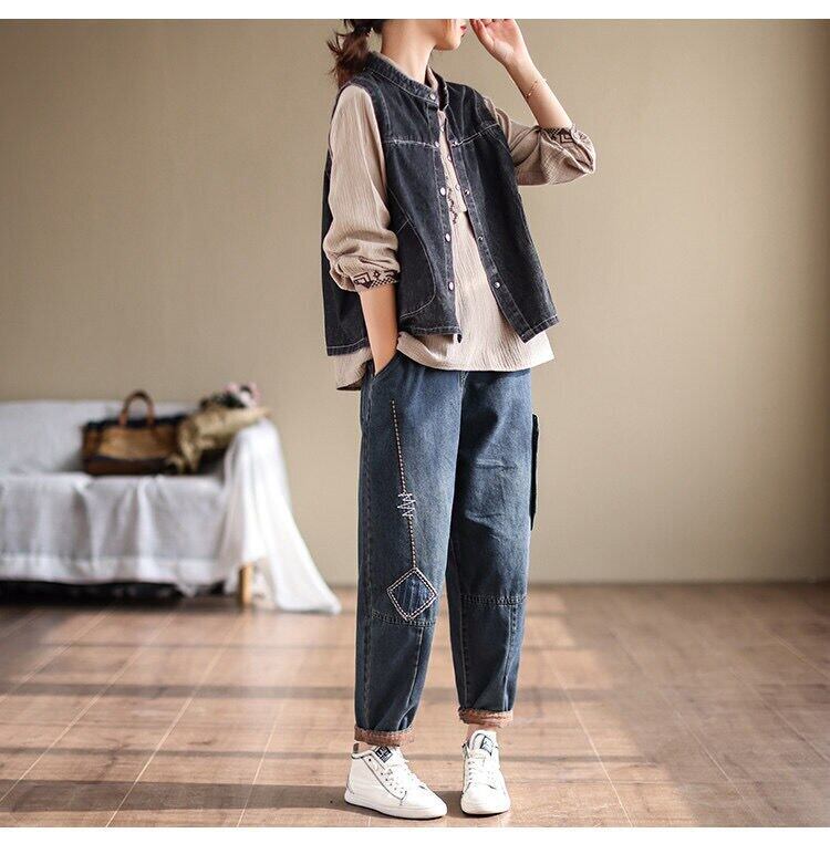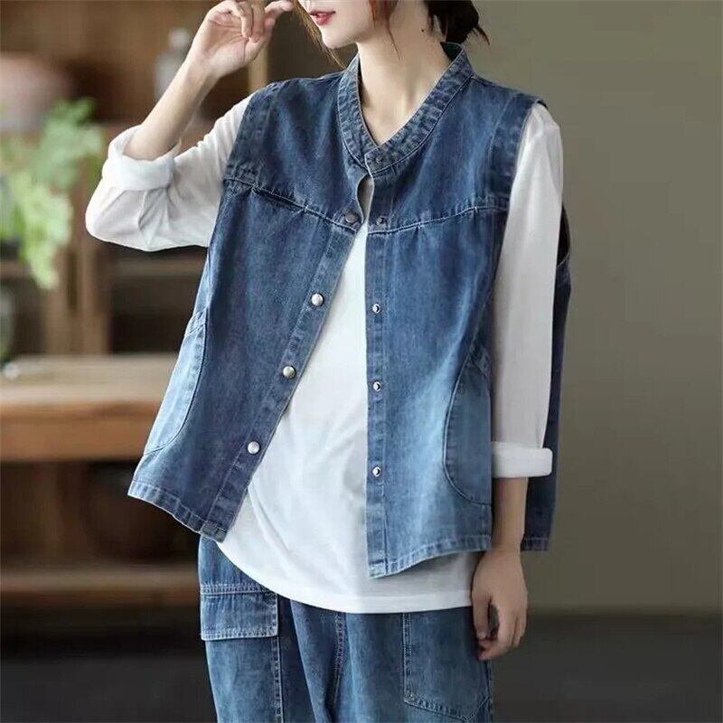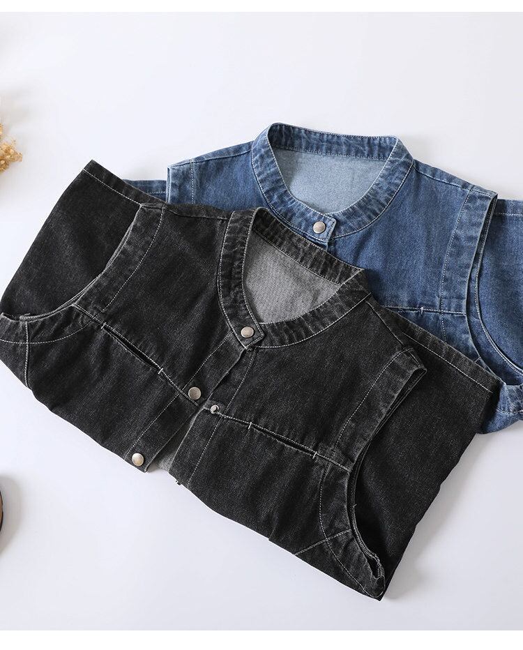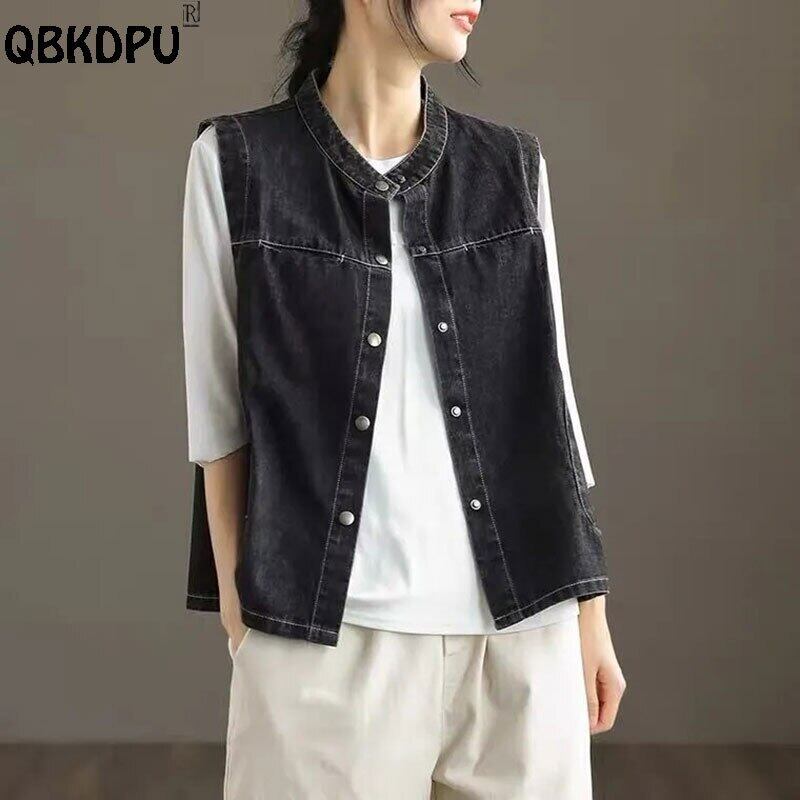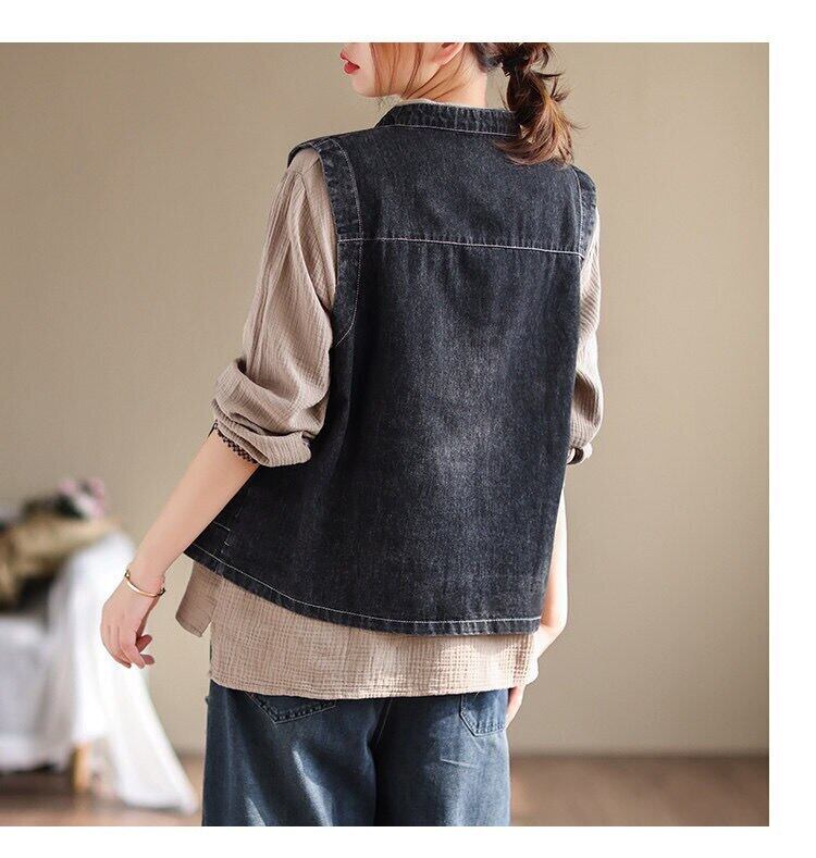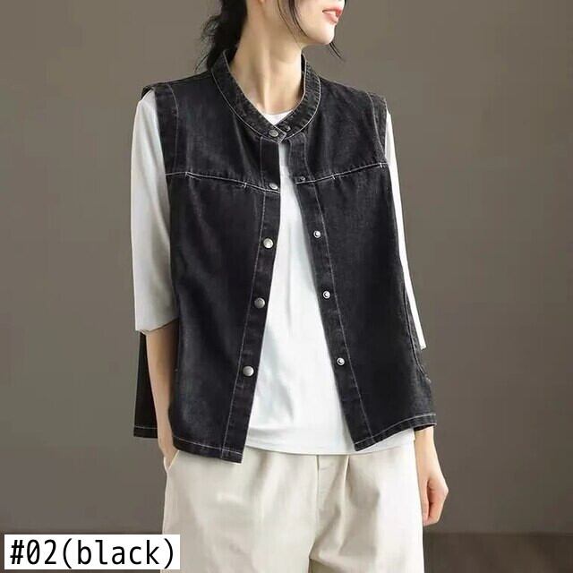 送料無料 プラス サイズ ラウンド ネック黒ベスト漂白ヴィンテージ デニム チョッキ女性ルース クロップ Chaleco Clic ノースリーブ ジーンズ ジャケット ブラック 大きめサイズ Oネック ビンテージ AE3356598395550239