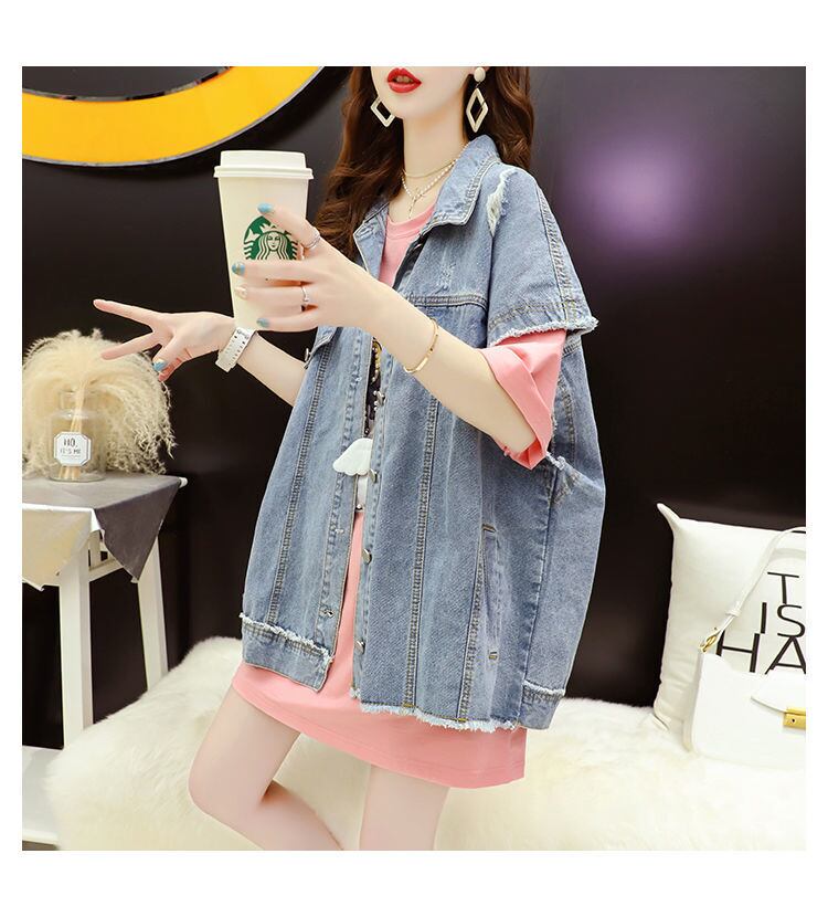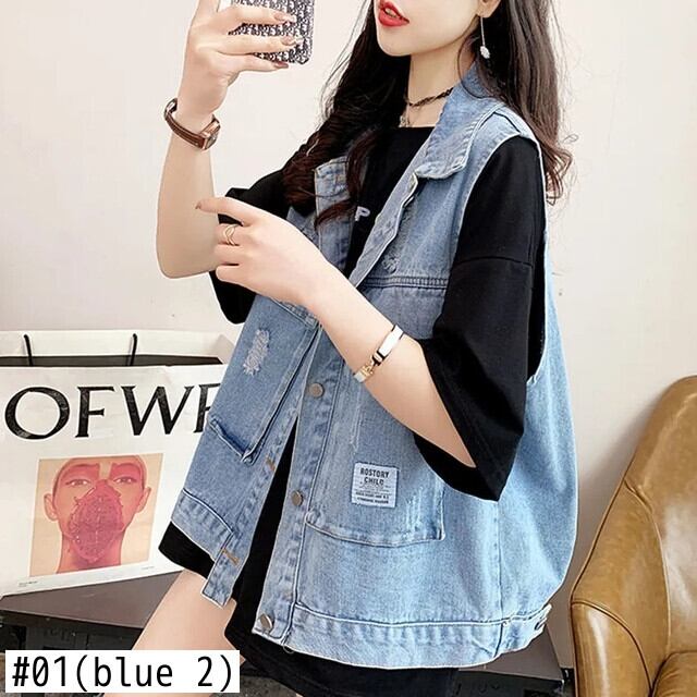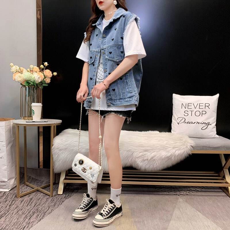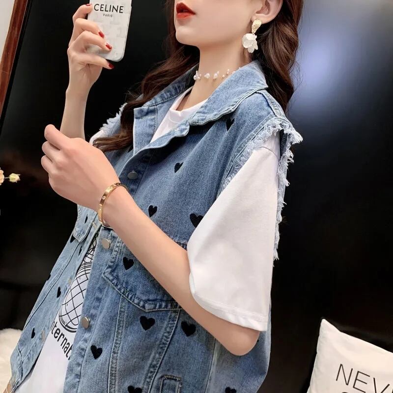 送料無料 甘い愛の刺繍デニムベスト女性 2022 緩いプラスサイズのチョッキシックな電話ノースリーブジーンズジャケット 大きめサイズ 大人ガーリー スウィート キュート カジュアル AE3356530943596283