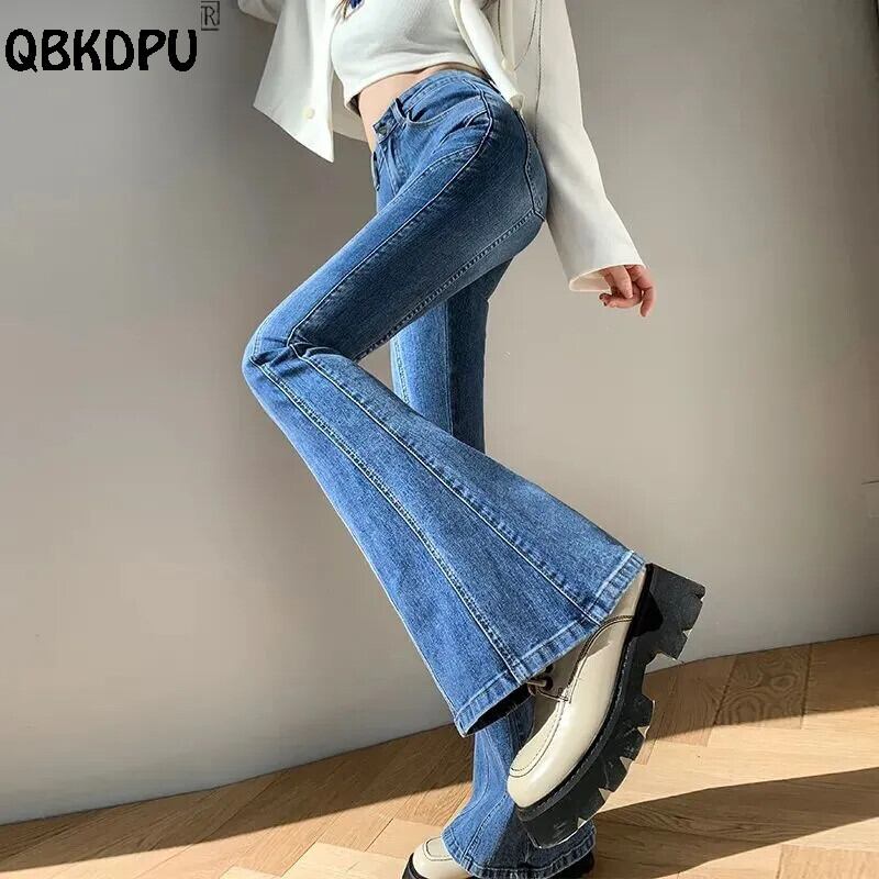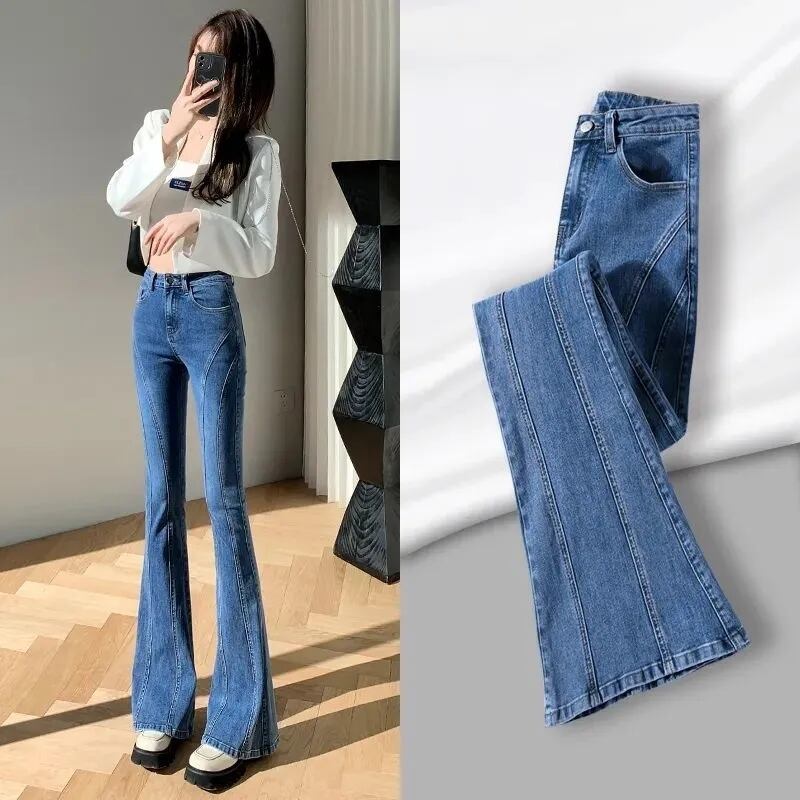 送料無料 スリム ヴィンテージ フレア ジーンズ ブルー女性のジーンズ スキニー パンツ ストレッチ ベルボトム Vaqueros アメリカン デニム レギンス 94-98 cm ビンテージ AE3356570674645212