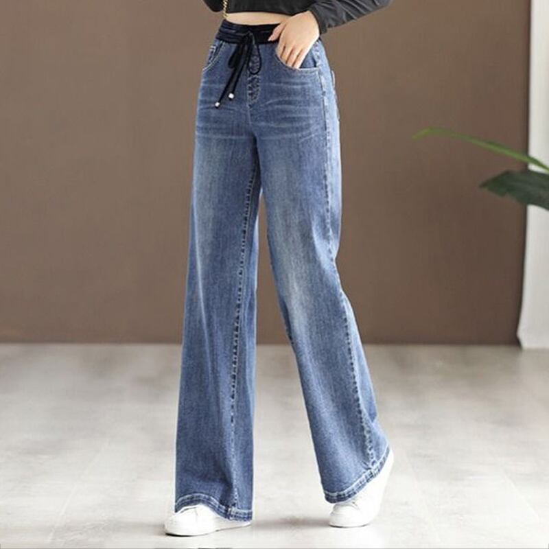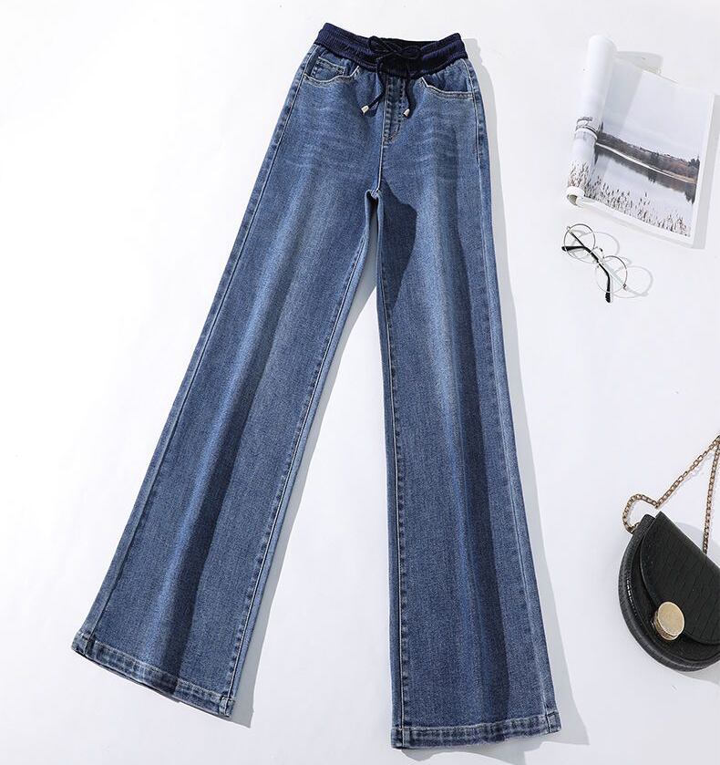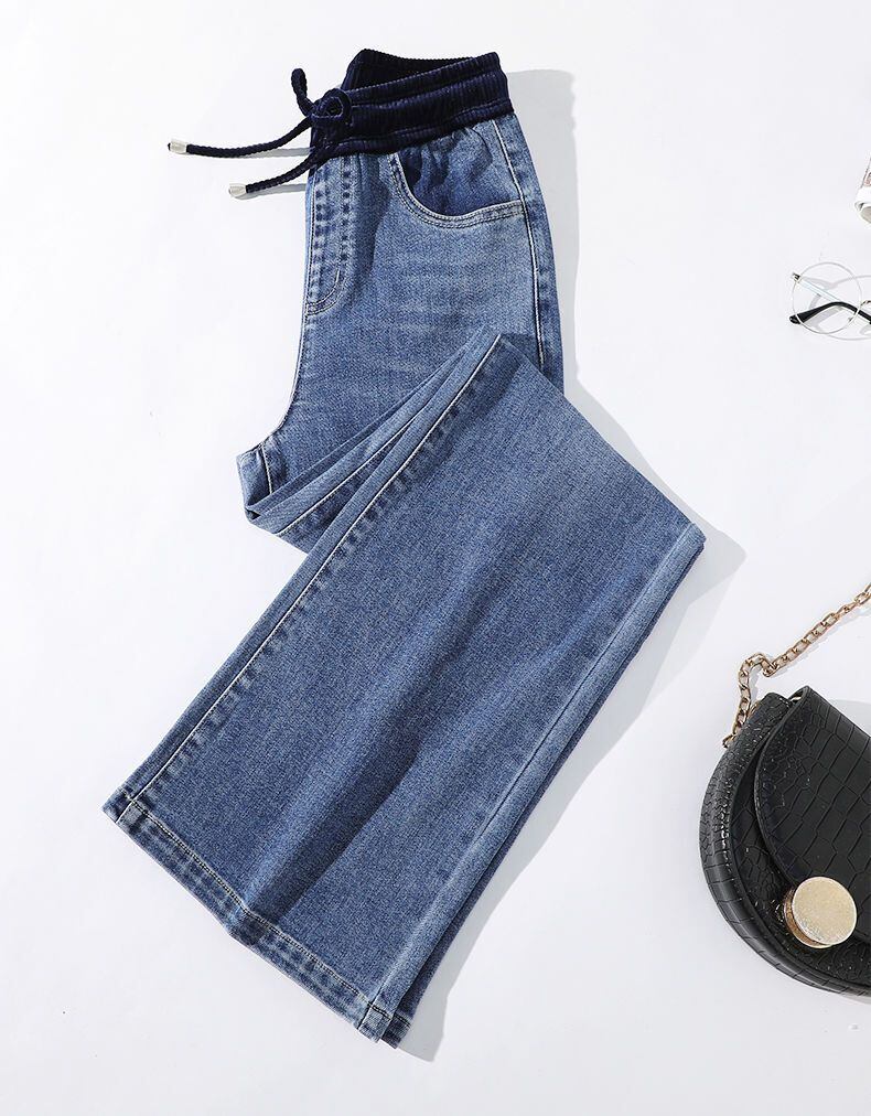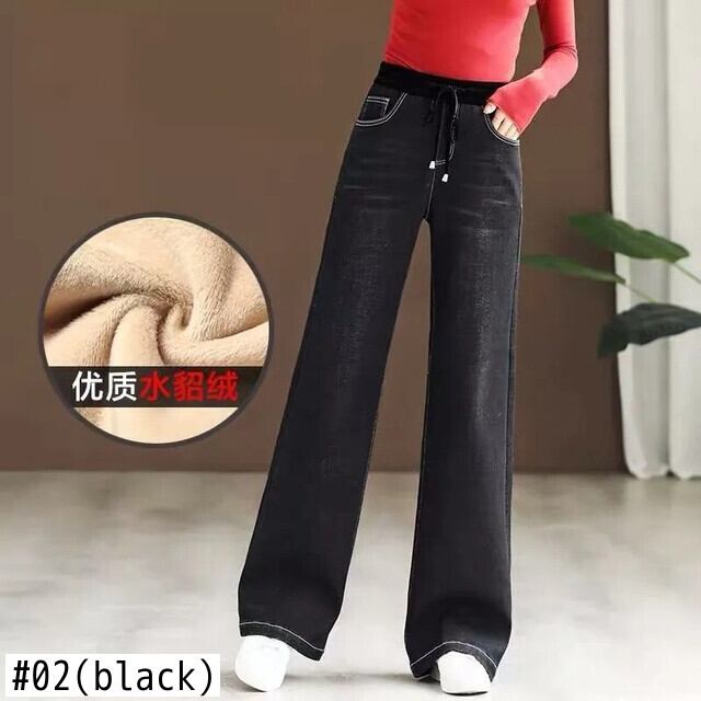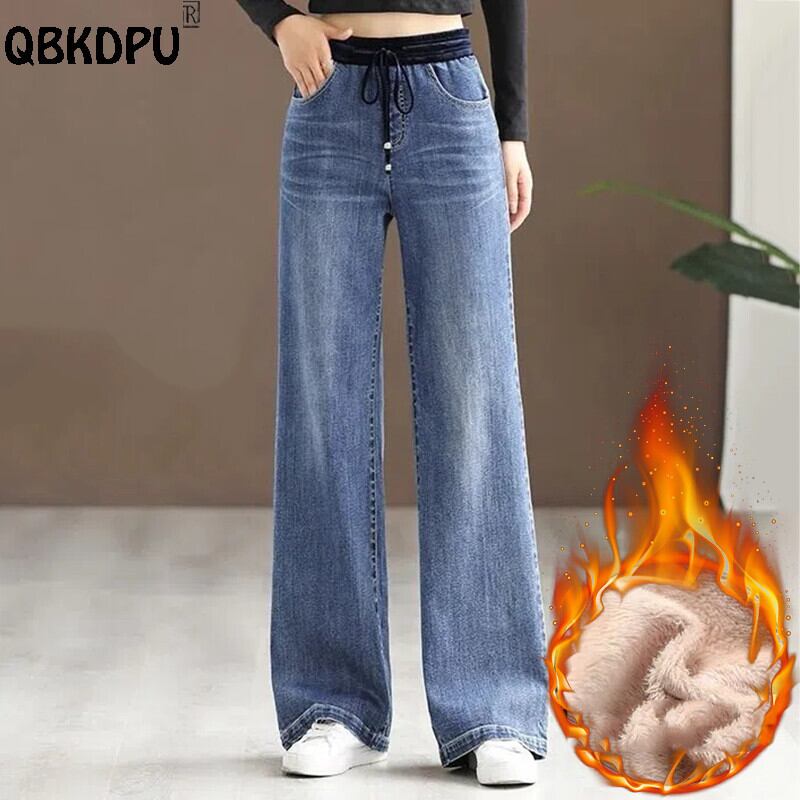 送料無料 冬の太いウエストワイドレッグジーンズ女性プラスベルベット特大 34 バギーデニムズボンママレースアップストレート Vaqueros ウィンター 冬物 ワイドパンツ AE3356585648222480