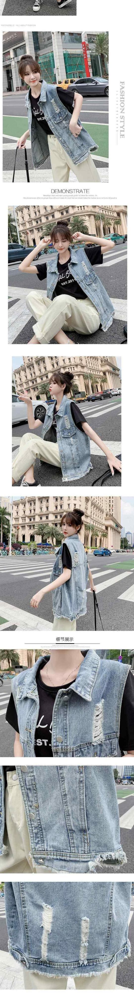 送料無料 ヴィンテージ擦り切れデニム ベスト女性のジャケット プラス サイズ ラペル パンク Chalecos シングルブレスト ライト ブルー チョッキ 大きめサイズ ビンテージ AE3356562624861299