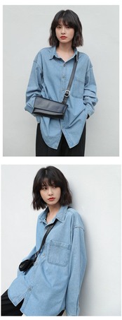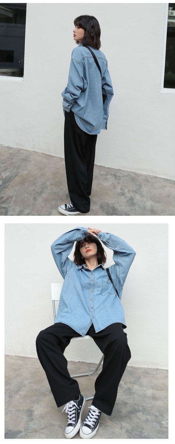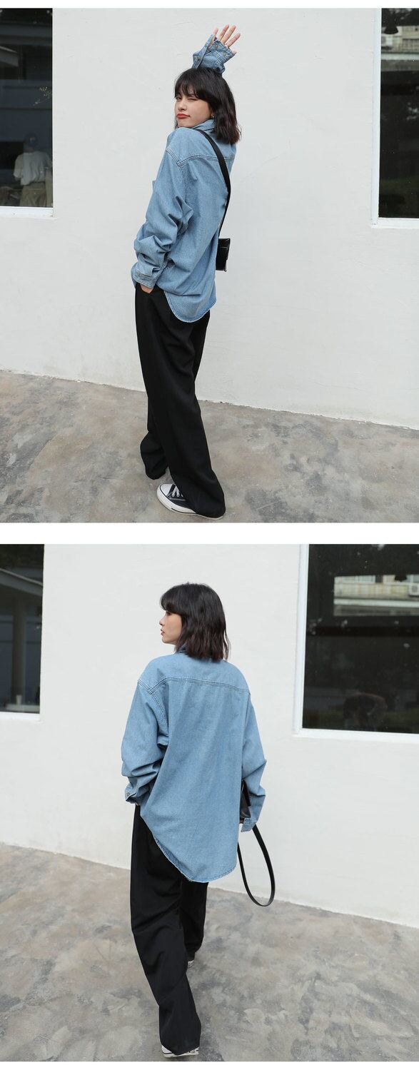 送料無料 デニムブラウス女性ポケットジーンズシャツ 2023 春秋のポロ襟ルーズロングスリーブデニムトップス 長袖 スプリング 春物 オータム 秋物 AE3356566337472858