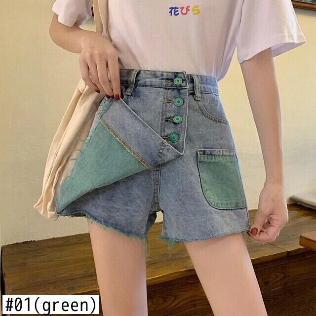 送料無料 特大 5XL Besign ジーンズキュロット女性 Tels コントラストカラーデニムショーツウエスト A ラインショート Vaqueros ブルマー Aライン AE3356537548269790