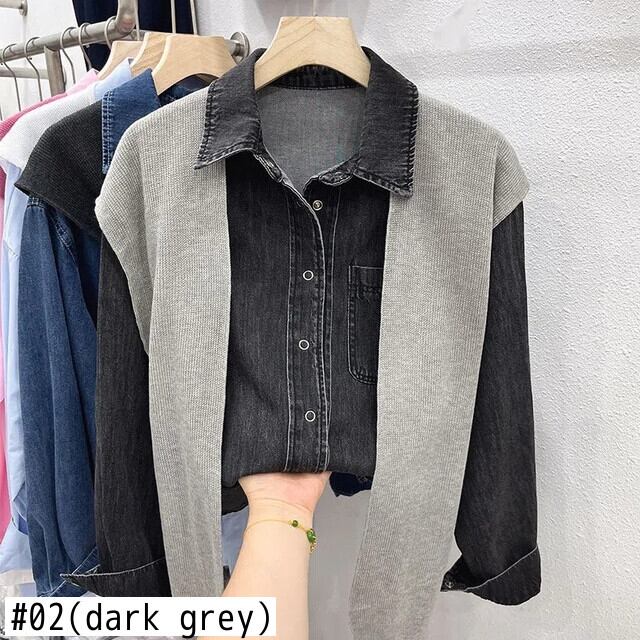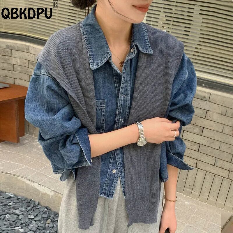 送料無料 ショール デニム シャツ女性クロップド ジーンズ ブラウス春秋カウボーイ ジャケット トレンド長袖 ロング スプリング 春物 AE3356571309726358