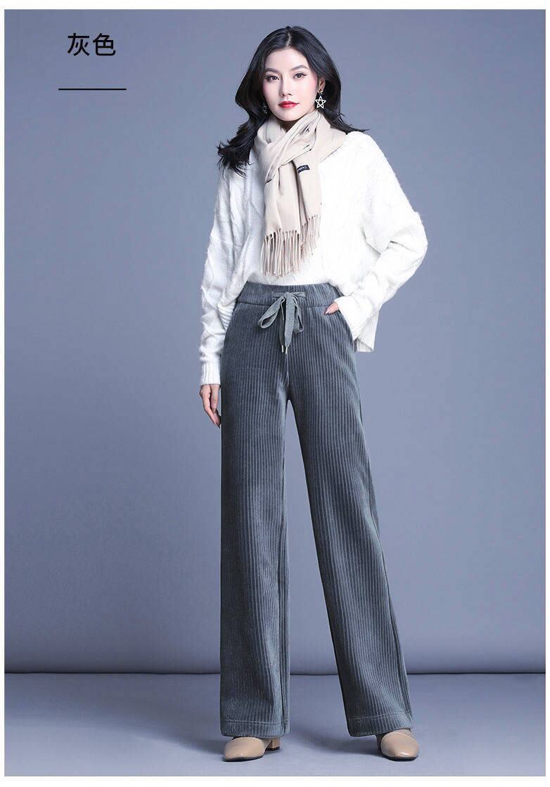 送料無料 黒コーデュロイワイドレッグパンツ女性プラスサイズ弾性ウエスト巾着だぶだぶ Pantalones オフィスレディストレートアンクルボトムス ブラック エラスティック 伸縮 大きめサイズ ワイドパンツ 会社 学校 通勤や通学にも AE3356546338802280