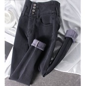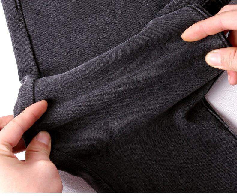 送料無料 2022 冬の厚みの女性のジーンズスリムウエストプラスベルベットデニムズボングレー暖かい特大スキニー Vaqueros ウィンター 冬物 AE3356540464590646