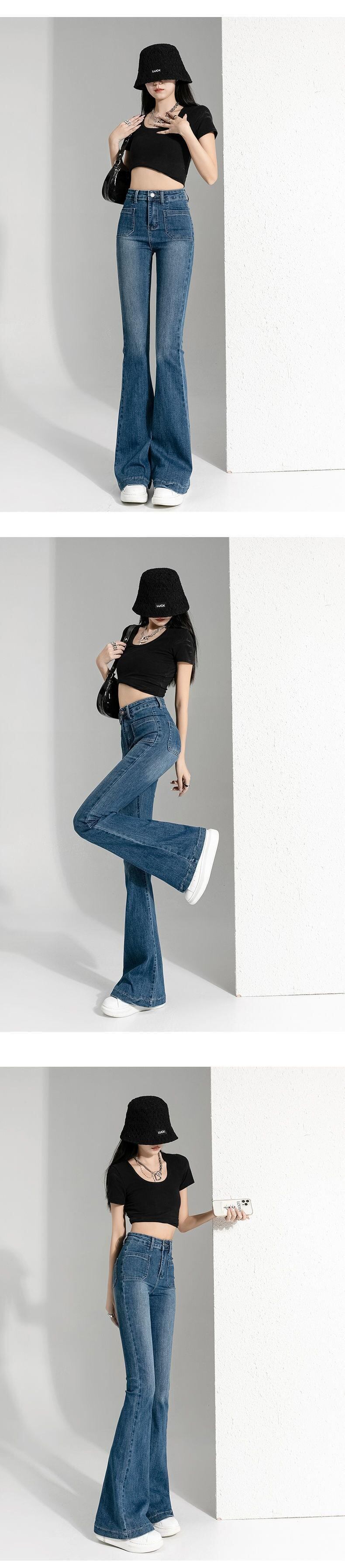 送料無料 ヴィンテージスリムフレアジーンズ女性ストリートウエストスキニー Vaqueros ベルボトムパンツデニムズボン ビンテージ AE3356531358313374
